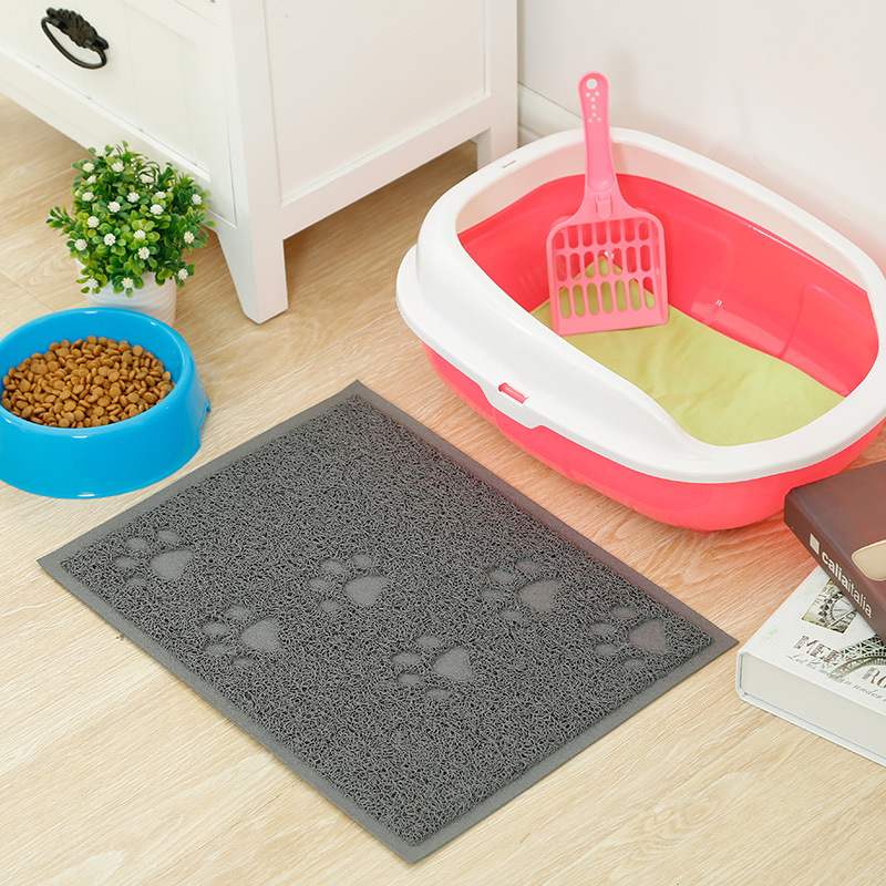 可以放在宠物吃饭的食盆下面,宠物笼下面,猫厕前面,也可以放在浴室门前