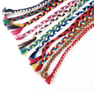 12#棉绳 三色三股辫子棉绳 7毫米民族风格装饰绳编织绳 裤腰带绳