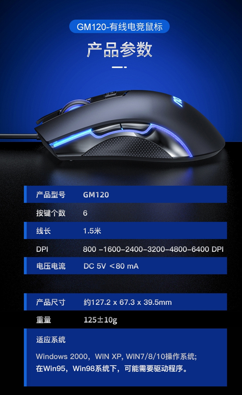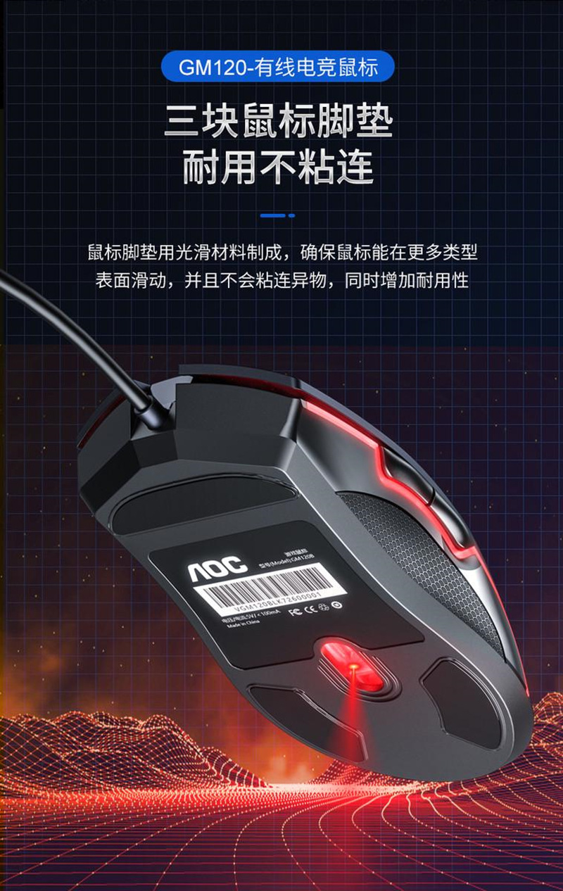 TPV AOC GM120 유선 발광 게임용 마우스 USB 데스크탑 노트북 경쟁 학생스토어 가기