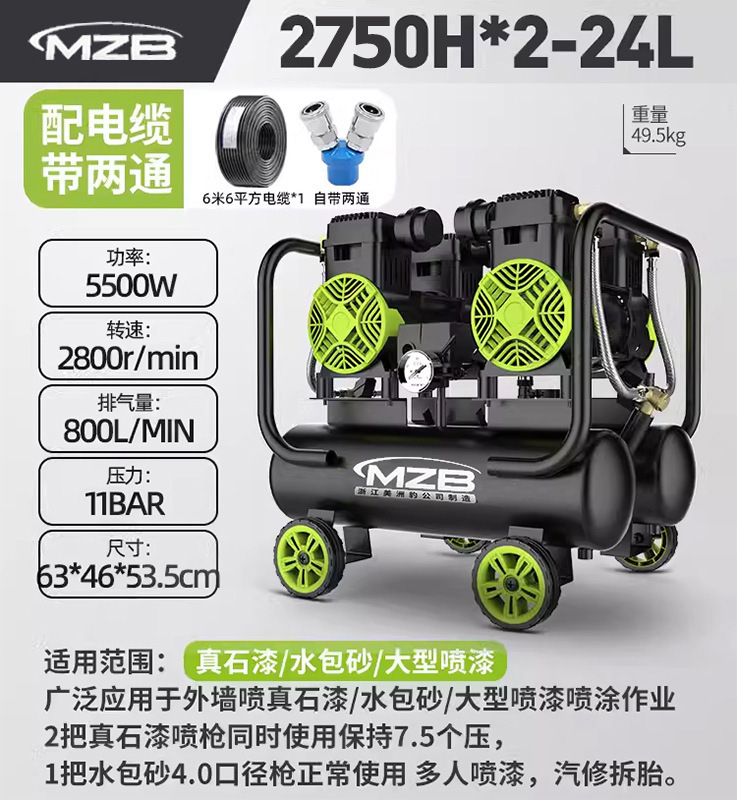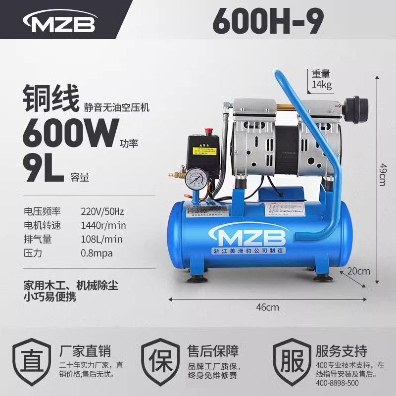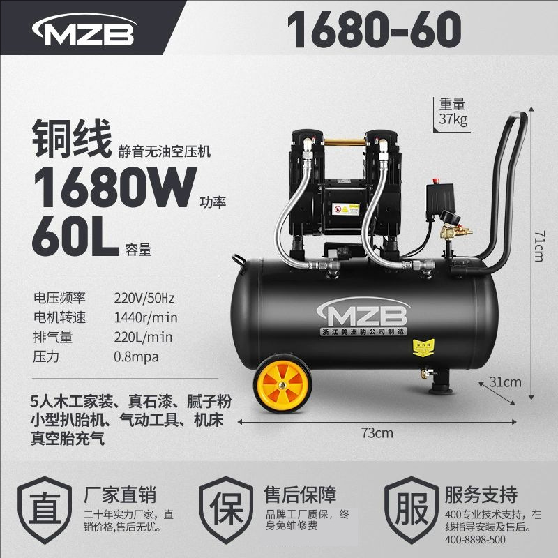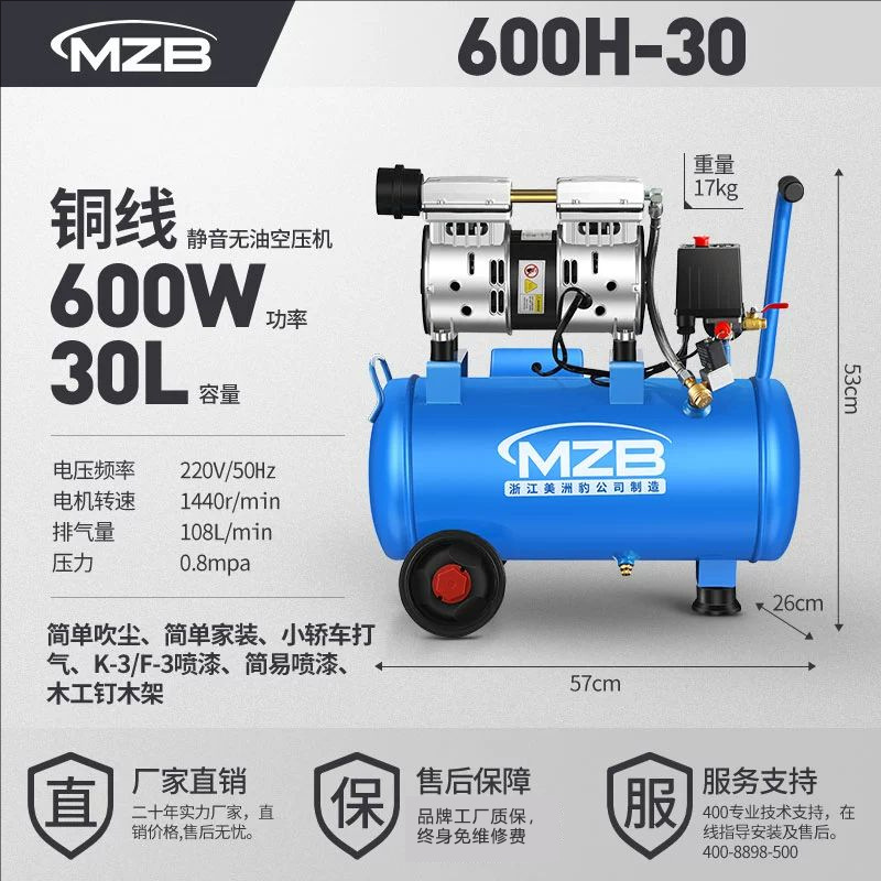 저소음 무오일 소형 공기압축기 수출용 압축기 600W30L 가정용 못총 목공용 공기펌프