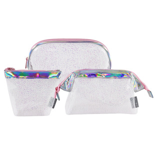 原创幻彩化妆包PVC透明镭射洗漱化妆包三件套 防水亮片零钱包定制