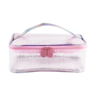 幻彩化妆包定制logo 透明pvc旅行收纳包 手提方形拉链防水洗漱包