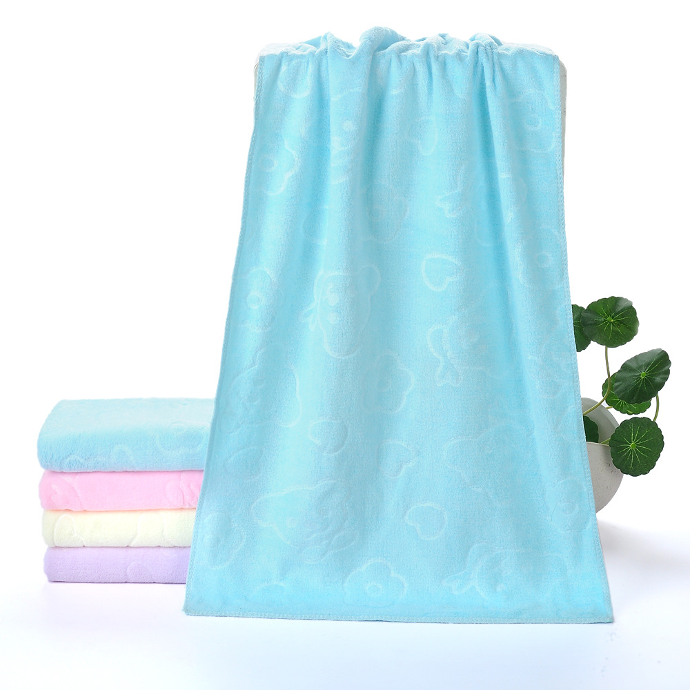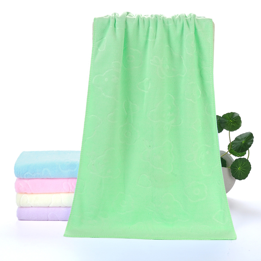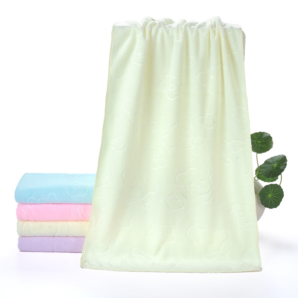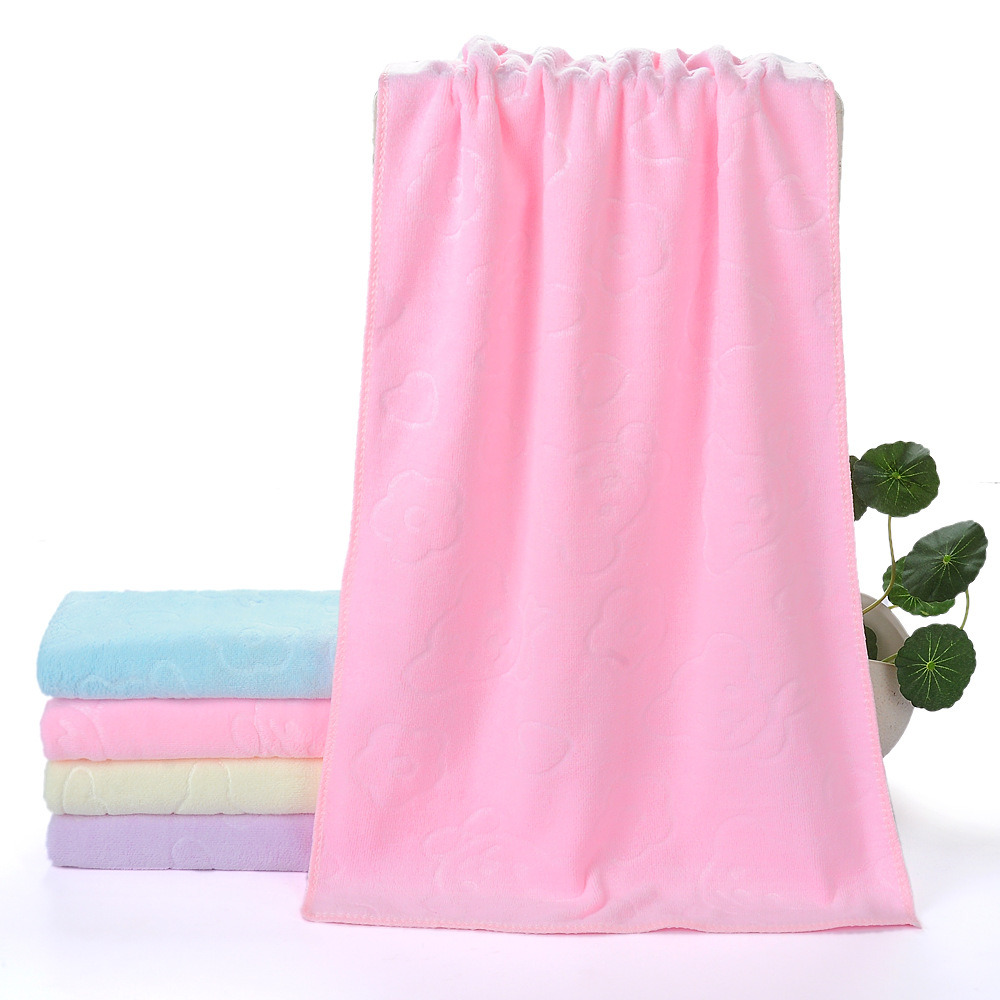 这是一款超细纤维系列的磨毛压花小熊毛巾,每平方230克左右,