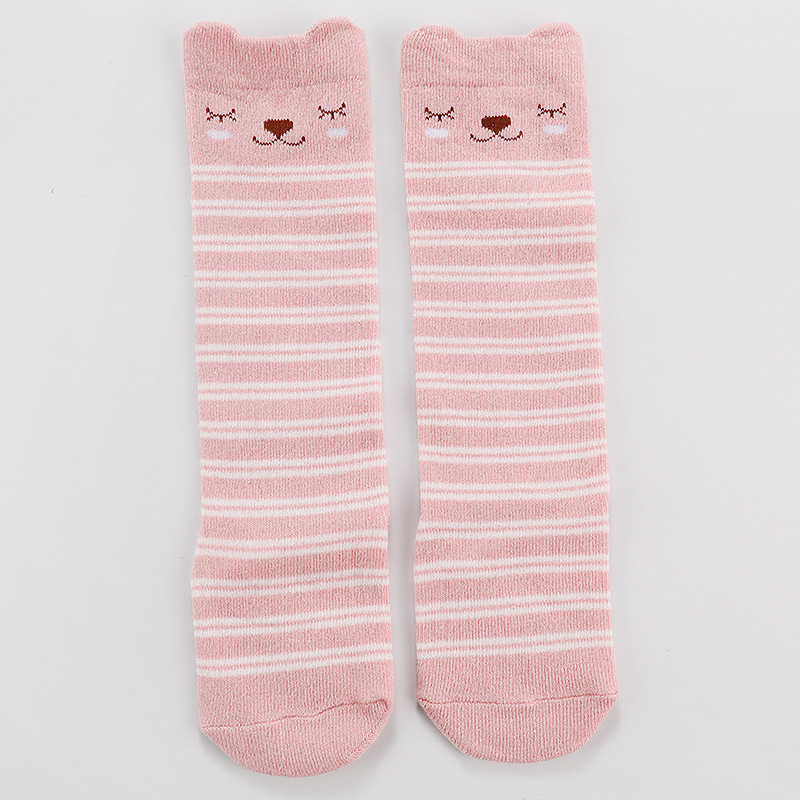 아기 양말 봄과 가을 만화 긴 입체 귀 아기 양말 미끄럼 방지 분배 아기 양말 어린이 바닥 양말