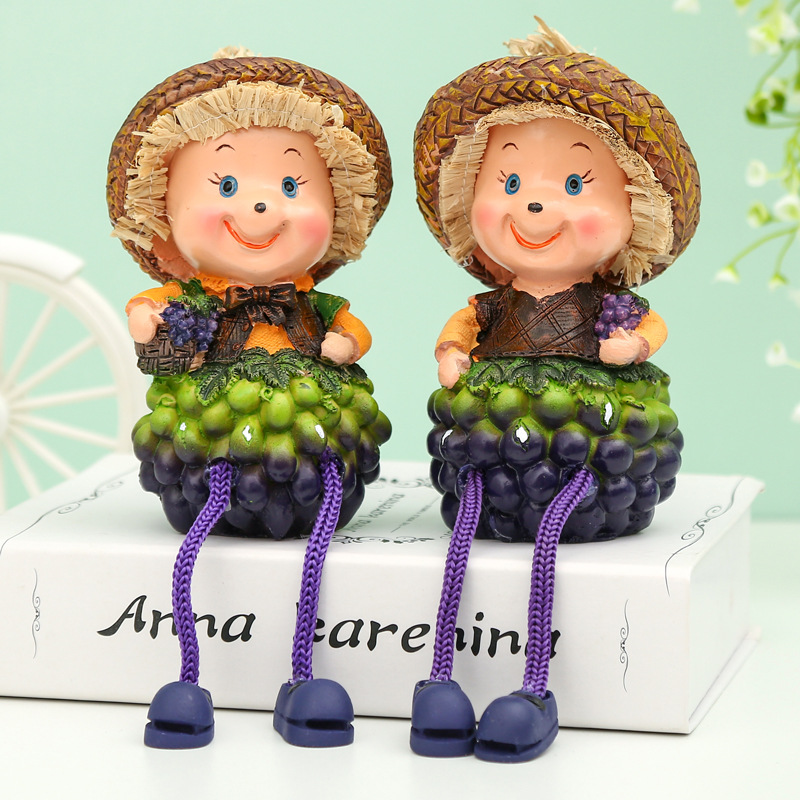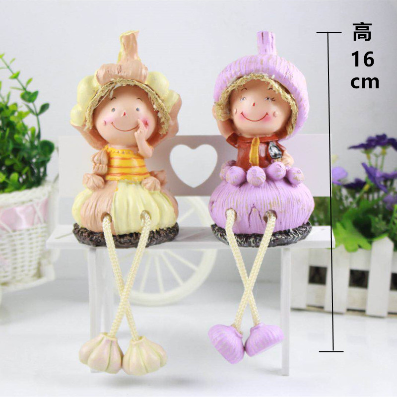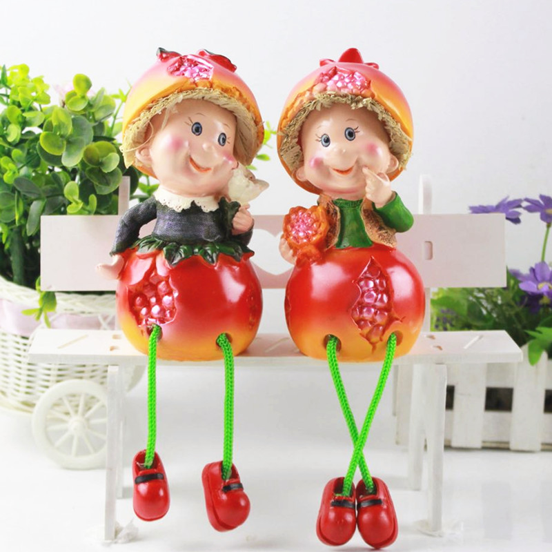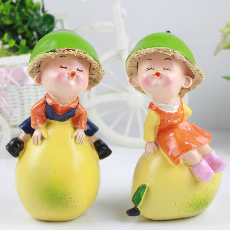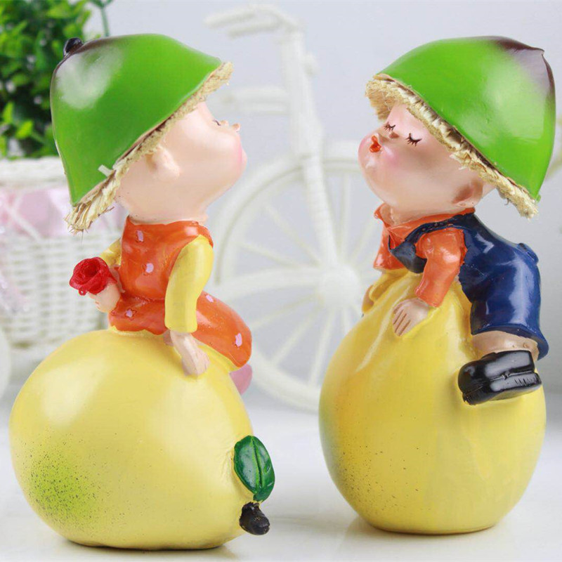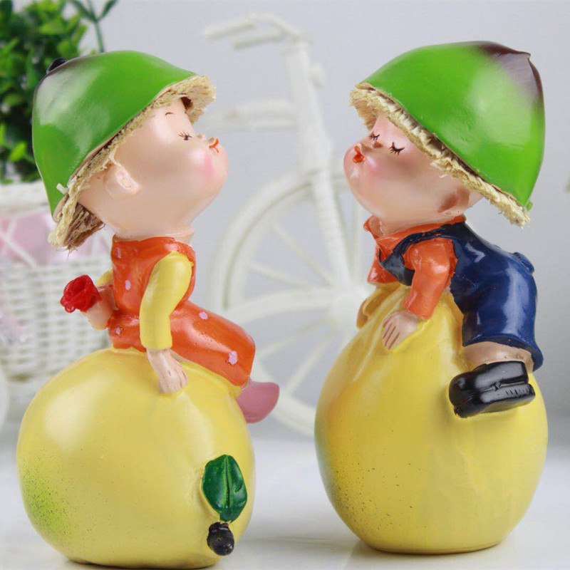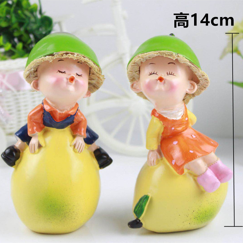 공장 직판 레진 인형 창의적인 전원풍 홈 장식품 커플 인형 오렌지 색상 걸이형 선물
