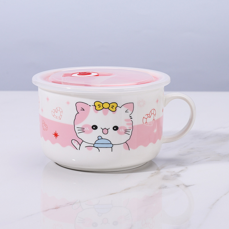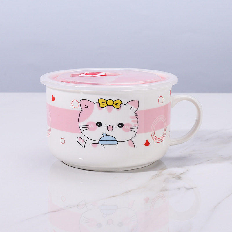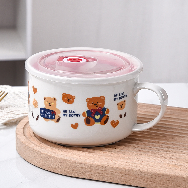 가정용 전자 레인지 세라믹 밀봉 된 신선한 보울 뚜껑 손잡이가 달린 학생 아침 식사 컵 도시락 상자 깔끔한 컵
