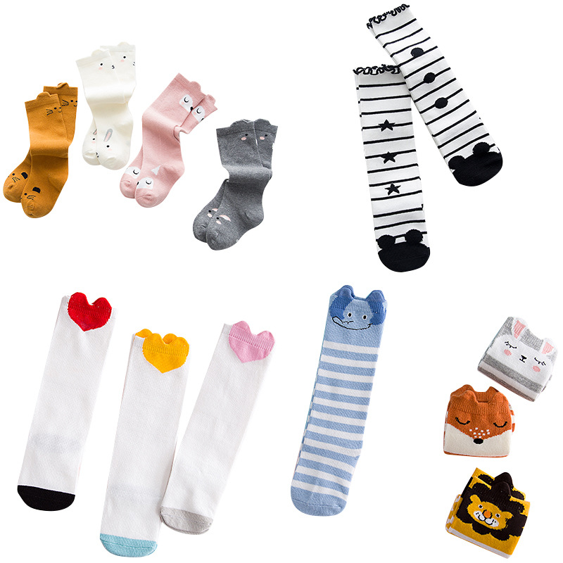 봄과 가을 어린이 양말 소년과 소녀 만화 무릎 양말 신생아 아기 스타킹 아기 송아지 양말 제조 업체 도매스토어 가기