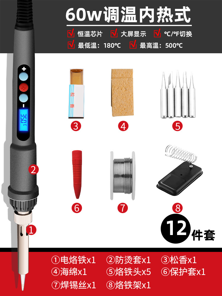 • [디지털 디스플레이 12 장 세트] 60W 전기 납땜 인두