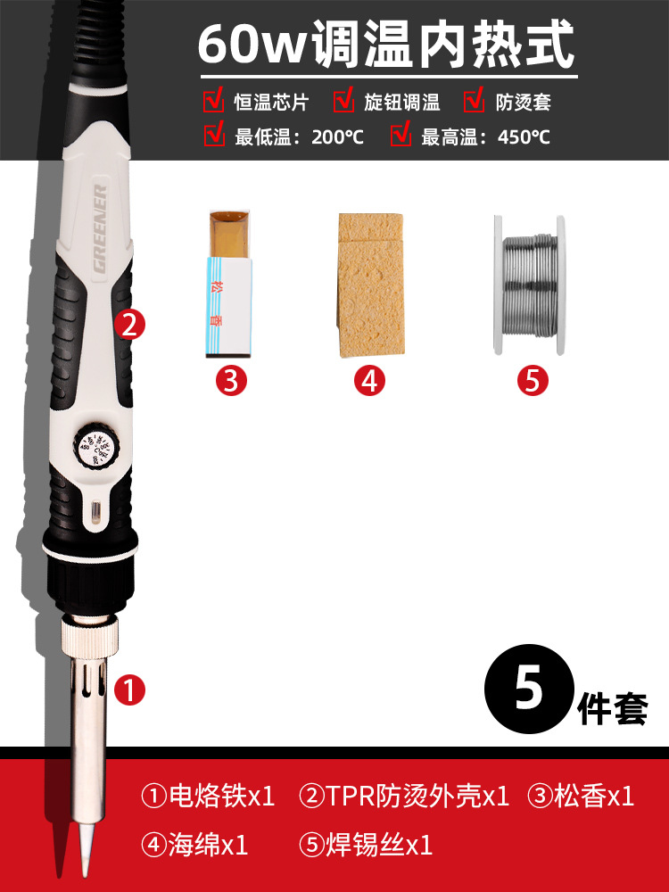 그린우드 전기 납땜 인두 가정용 내부 난방 전기 Luo 철 도구 일정 온도 납땜 주석 학생을위한 조정 가능한 고출력 세트스토어 가기