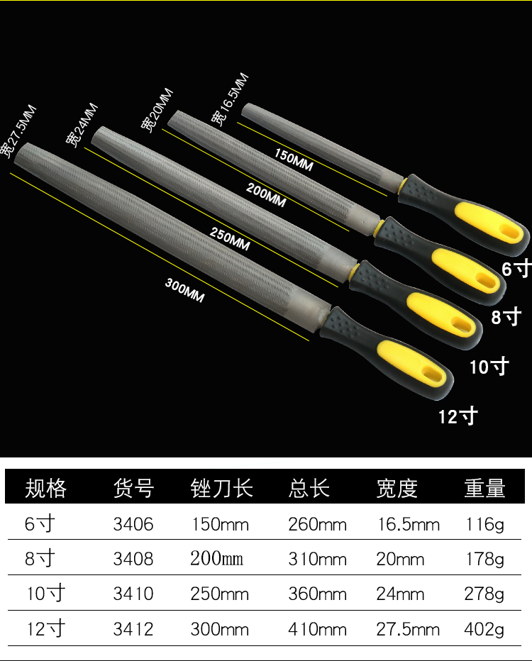 • 6 인치 [반원형 파일] a