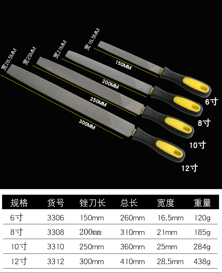 파일 스틸 파일 공장 직접 5 피스 파일 세트 고탄소강 플랫 라운드 파일 6 인치 8 인치 10 인치 12 인치