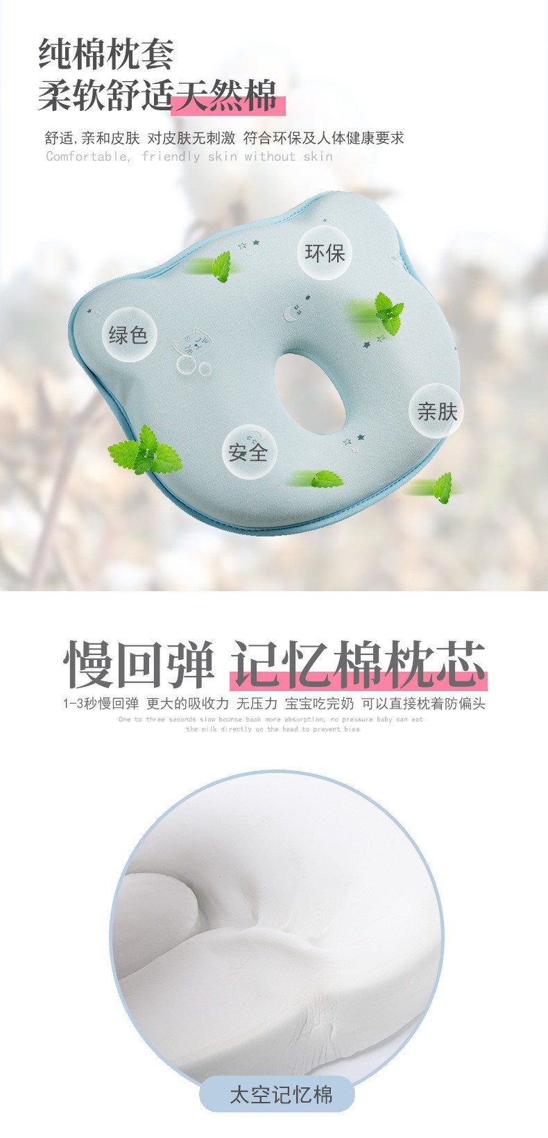 아마존 아기 모양 베개 곰면 슬로우 리바운드 메모리코튼 커스텀 도매 0-1 세 신생아 베개스토어 가기