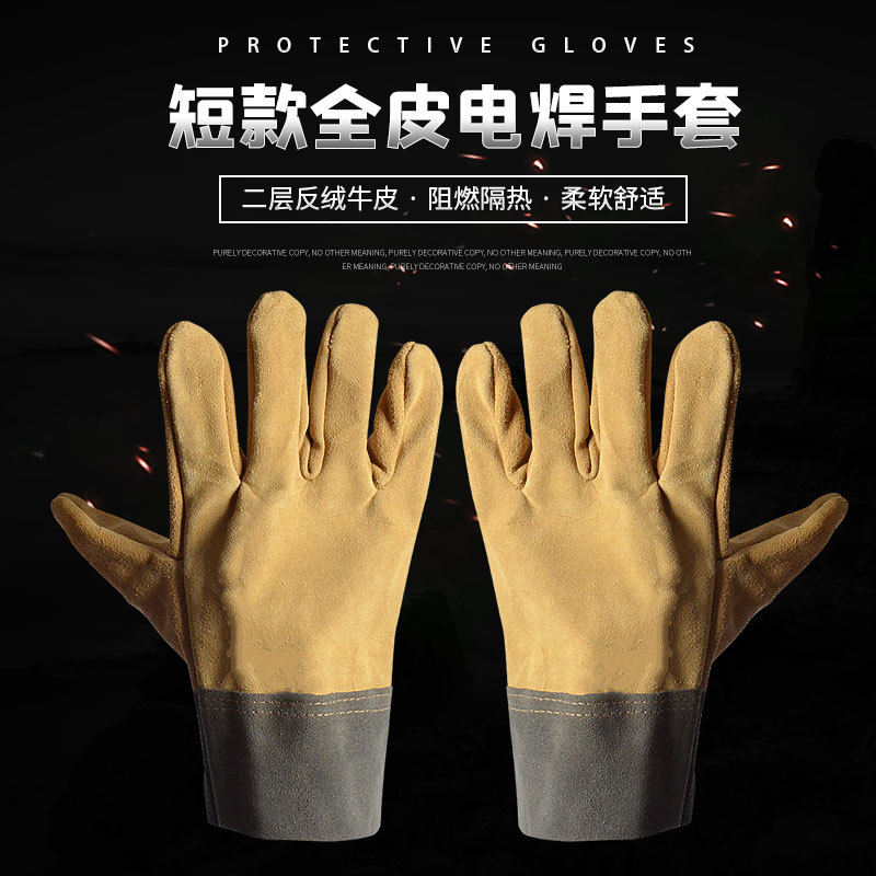 짧은 모든 가죽 용접기 장갑 소형 모든 가죽 용접 장갑 절단 방지 및 자상 방지 고온 저항 모든 가죽 용접 장갑