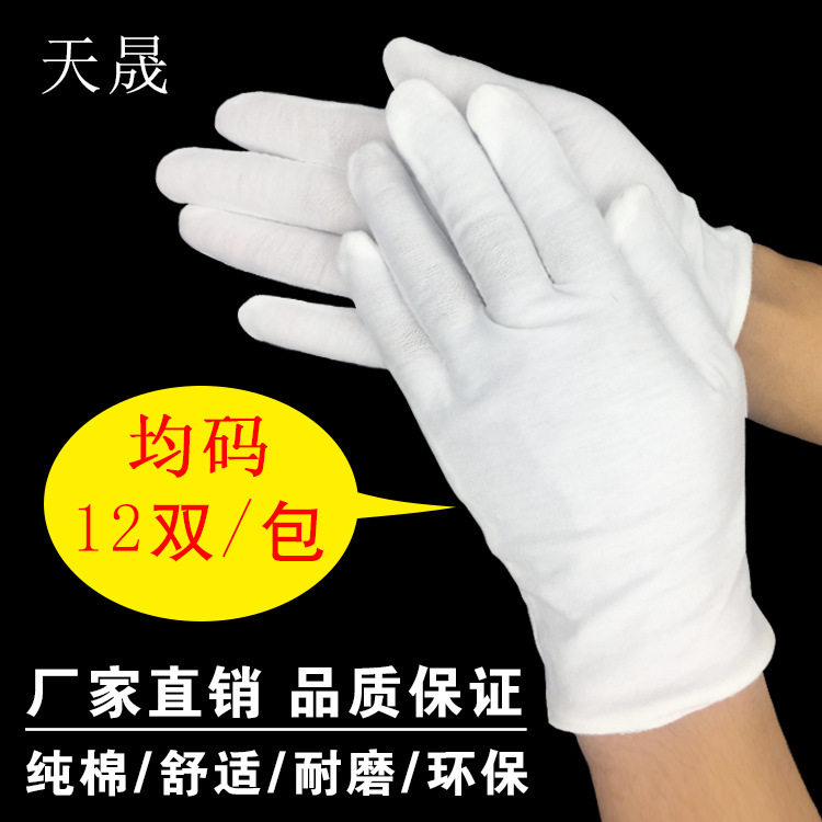 순면 작업용 흰색 장갑, 어린이 장갑, 에티켓 장갑, 흰색 미끄럼 방지 면 장갑, 내마모성 노동 보호 장갑스토어 가기