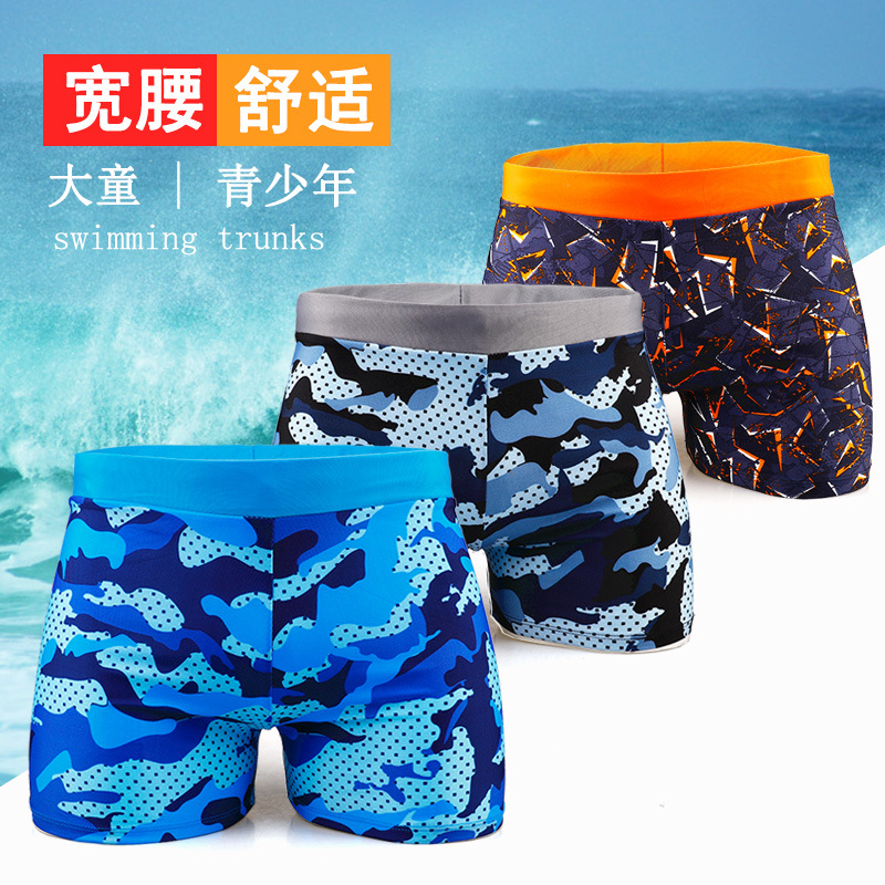 큰 소년 청소년 수영 트렁크 와이드 웨이스트 복서 패션 학생 온천 수영 트렁크 초등학생 및 중학생을위한 수영 트렁크스토어 가기