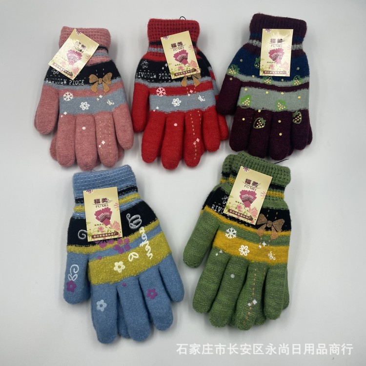 가을과 겨울 남자와 여자의 따뜻한 니트 모헤어 승마 따뜻한 기모 두꺼운 전체 손가락 방한 매직 장갑