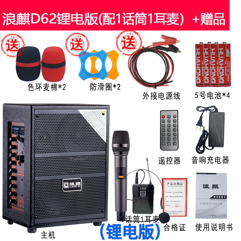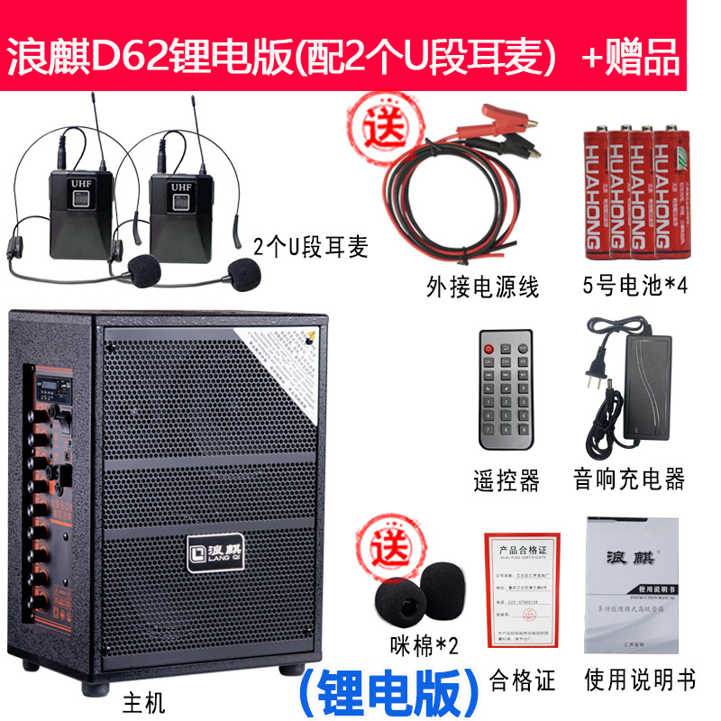 • D62 리튬 배터리 버전(마이크 1개 및 헤드셋 1개 포함) + 선물