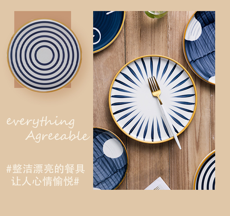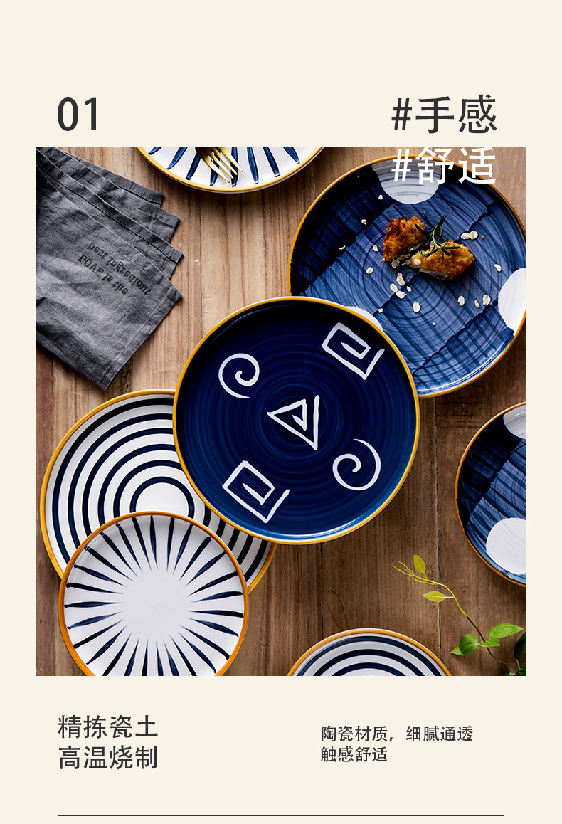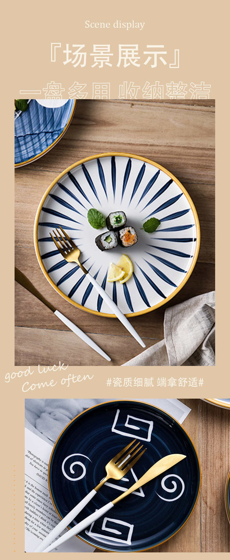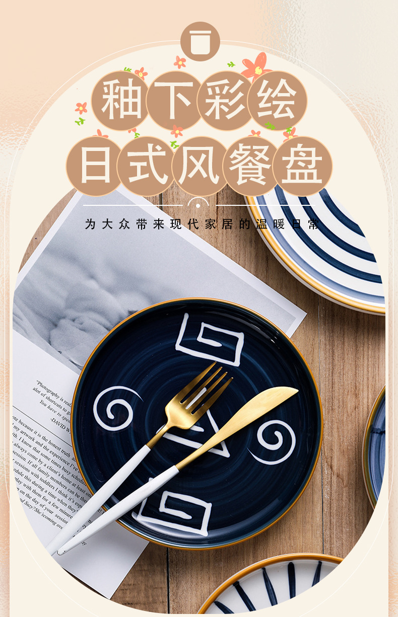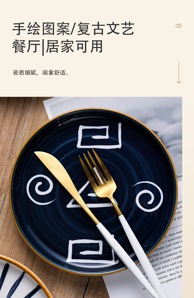 일본식 창의적인 원형 접시 수작업 유약 밑칠 평평한 접시 가정용 세라믹 서양식 스테이크 접시 신형 본차이나 식기 디저트 접시스토어 가기