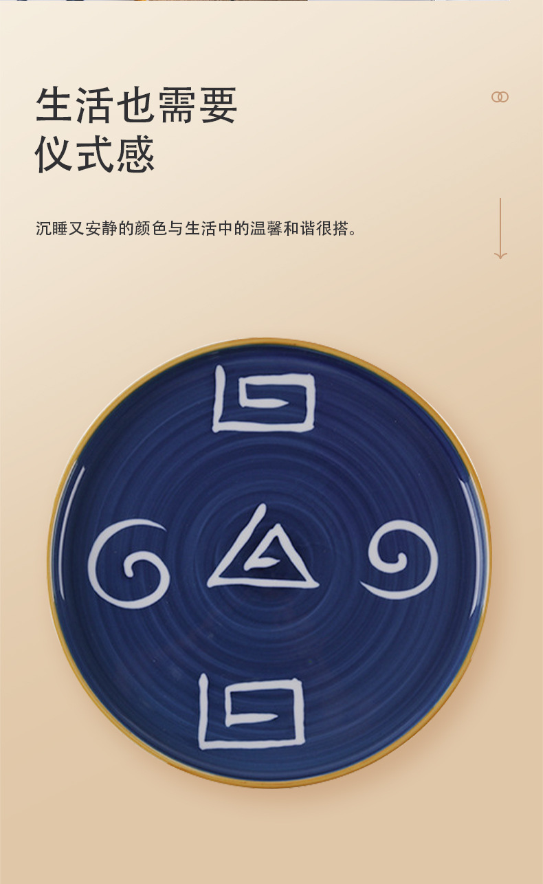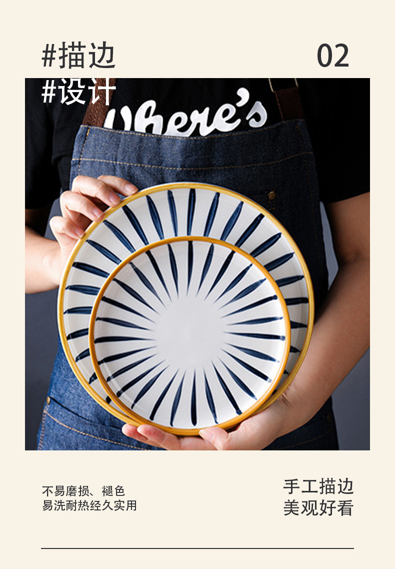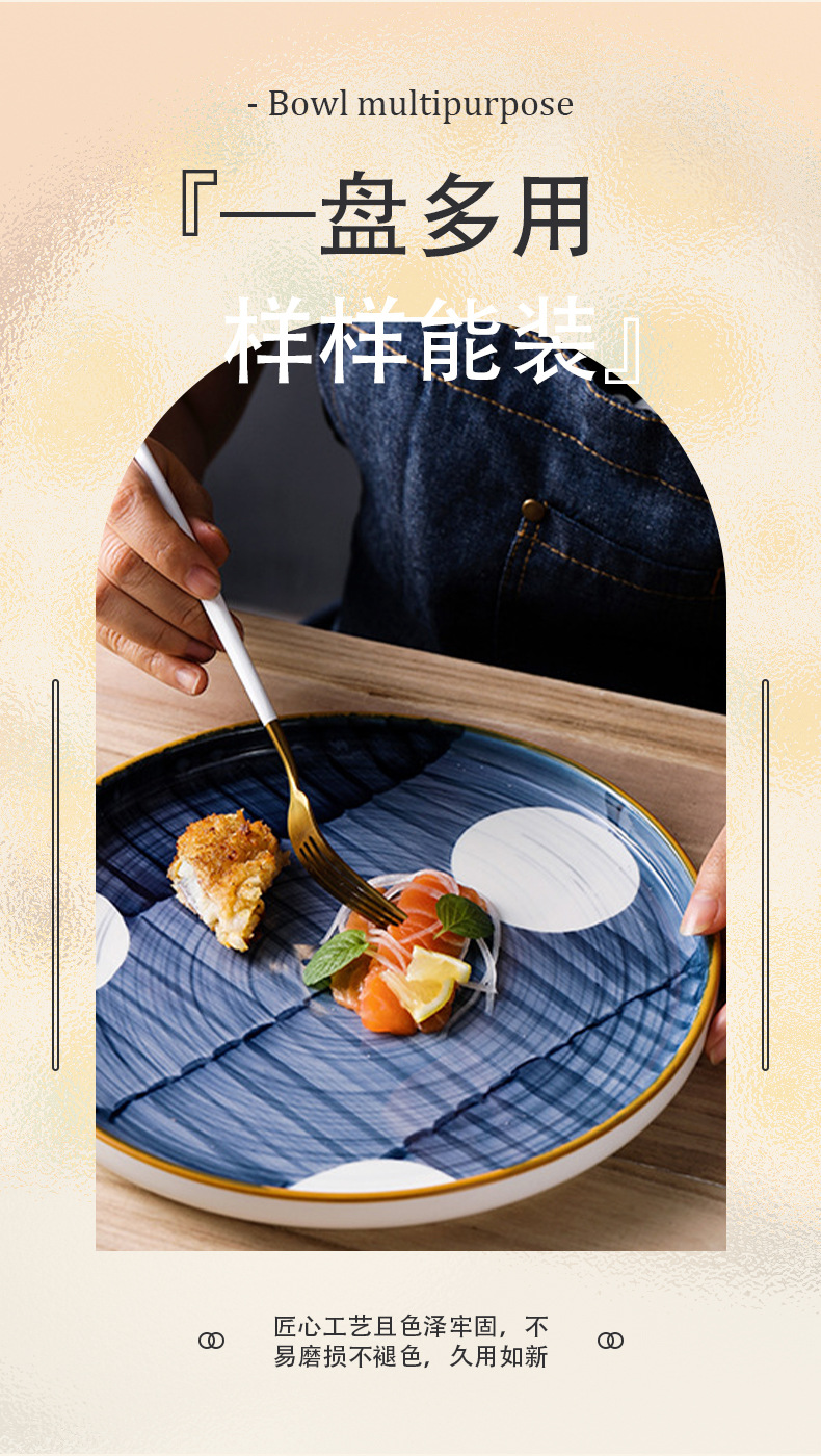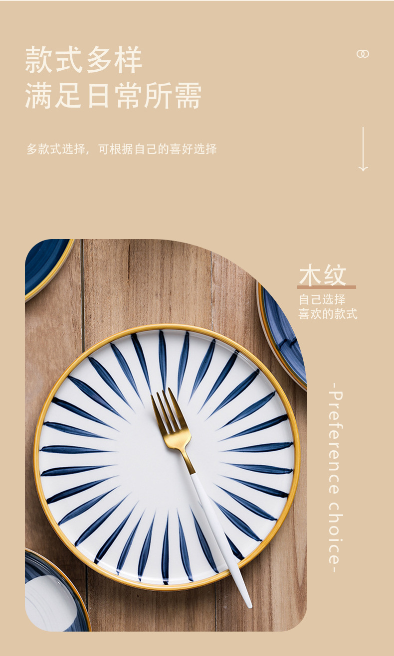 일본식 창의적인 원형 접시 수작업 유약 밑칠 평평한 접시 가정용 세라믹 서양식 스테이크 접시 신형 본차이나 식기 디저트 접시스토어 가기