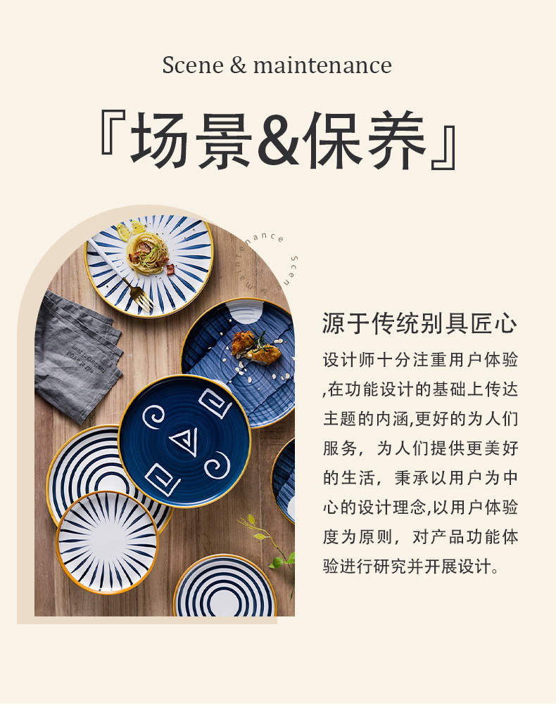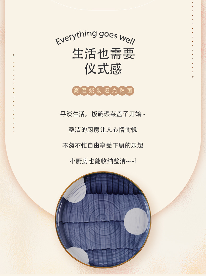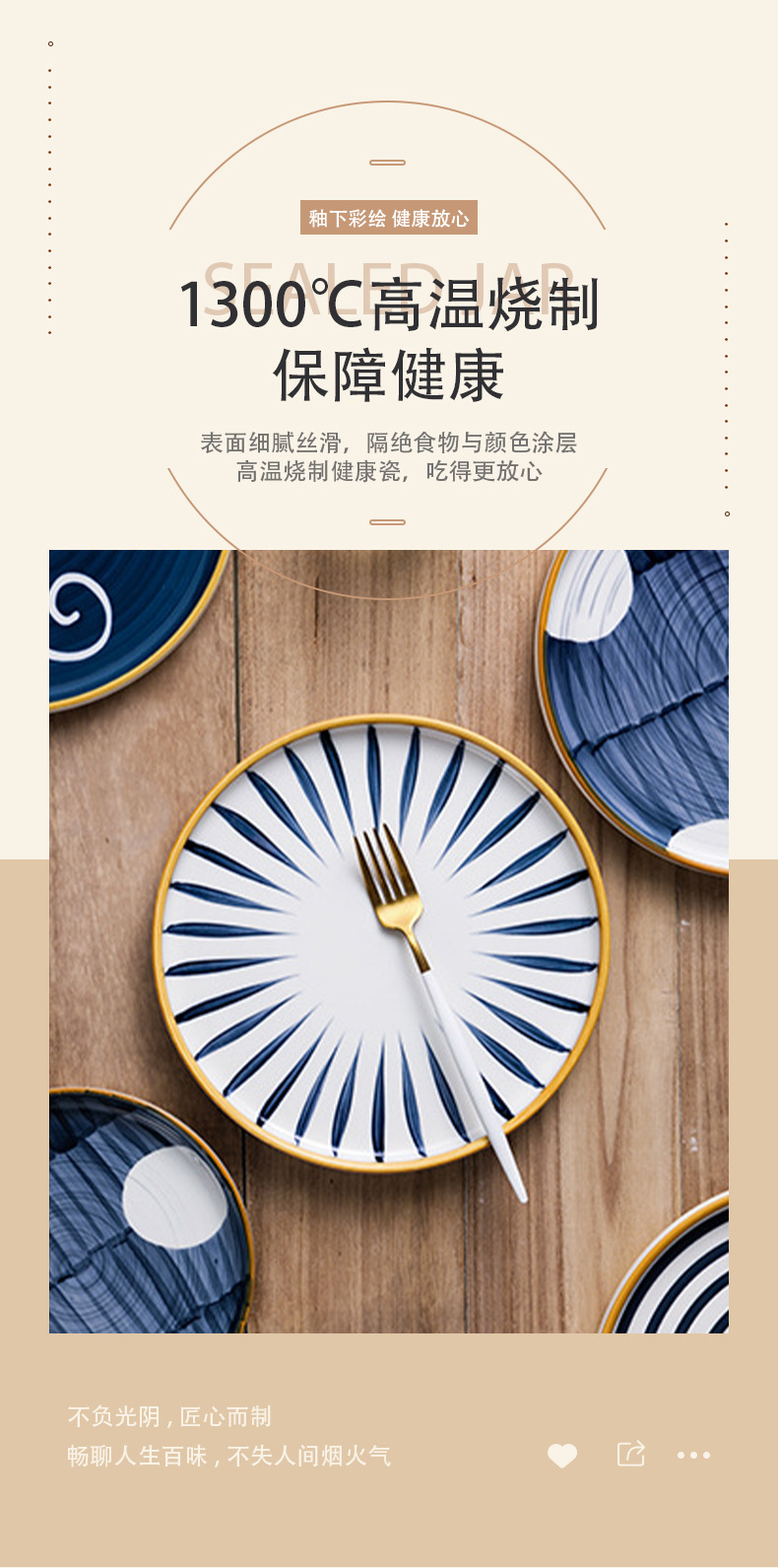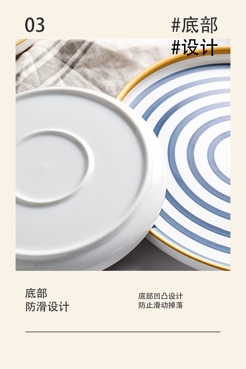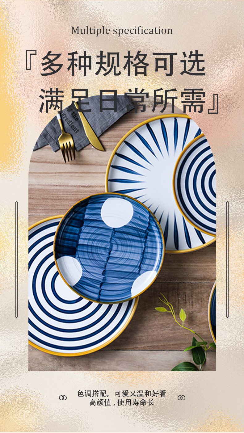 일본식 창의적인 원형 접시 수작업 유약 밑칠 평평한 접시 가정용 세라믹 서양식 스테이크 접시 신형 본차이나 식기 디저트 접시스토어 가기
