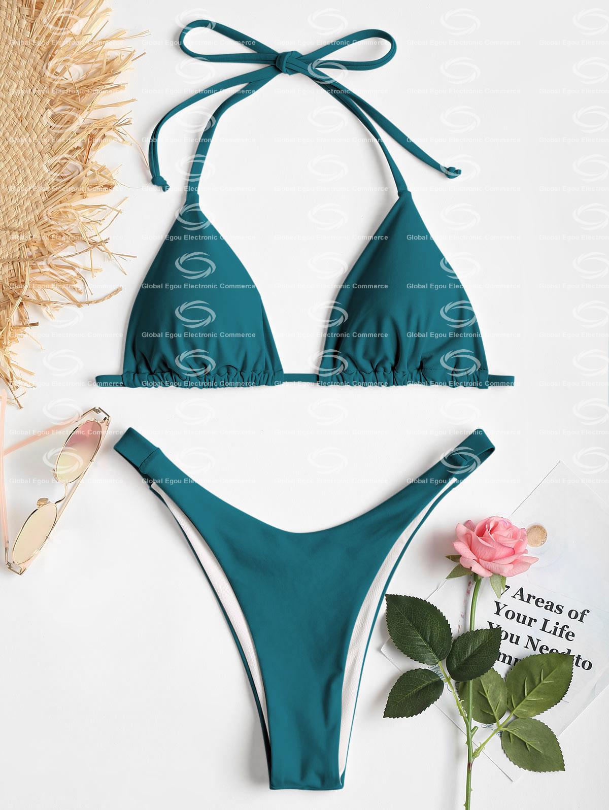 2021 유럽과 미국의 새로운 뜨거운 단색 나일론 높은 탄성 비키니 신선한 귀여운 핑크 삼각형 비키니스토어 가기