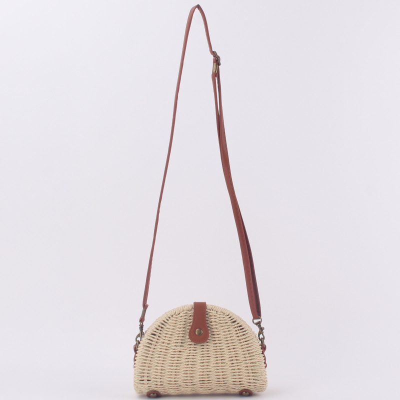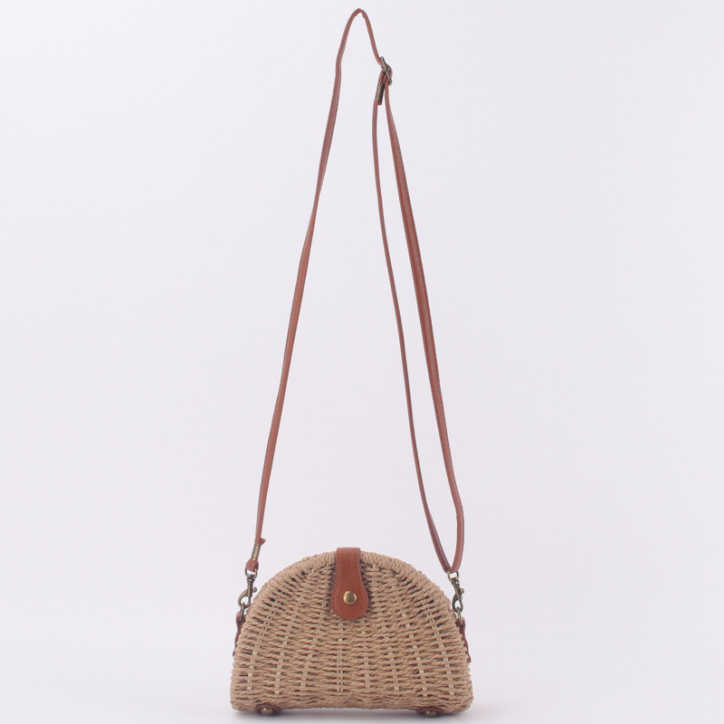 새로운 스타일의 심플한 크로스바디 우븐 백, 비치백, 여성용 반원형 밀짚 가방