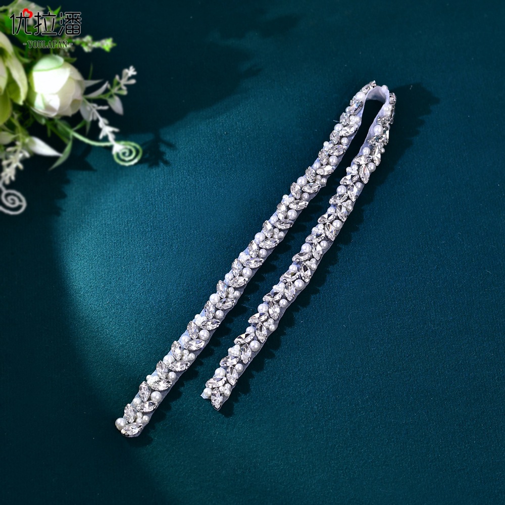 Yulapan 신부 벨트 여자의 장식 웨딩 원피스 선물 의상 럭셔리 라인 석 진주 실버 허리 의류 S383스토어 가기