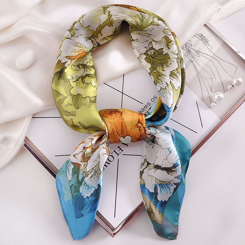 스퀘어 스몰 스퀘어 스카프 여성용 한국 4 궁전 컬러 블록 여름 장식 작은 스카프 스튜어디스 전문 작은 실크 스카프
