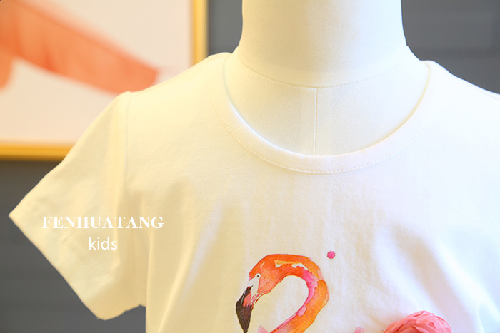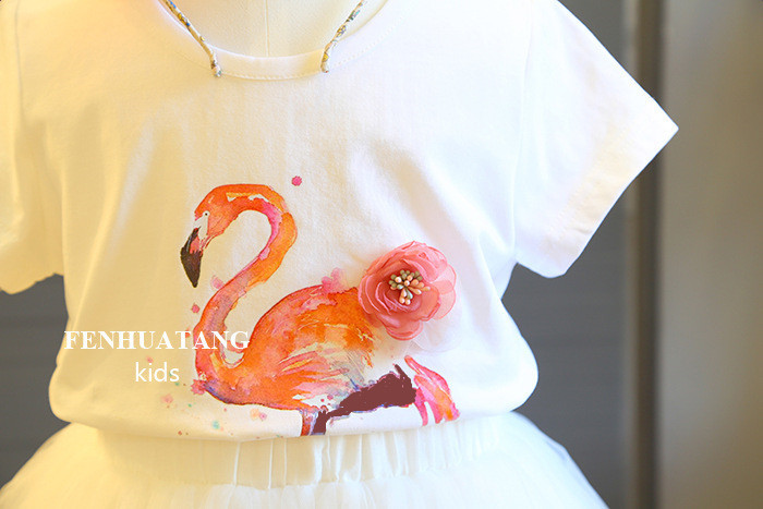 폭발 2020 여름 여성 아동복 플라밍고 반팔 티셔츠 + 조커 그라데이션 소녀의 원피스 투피스 세트스토어 가기