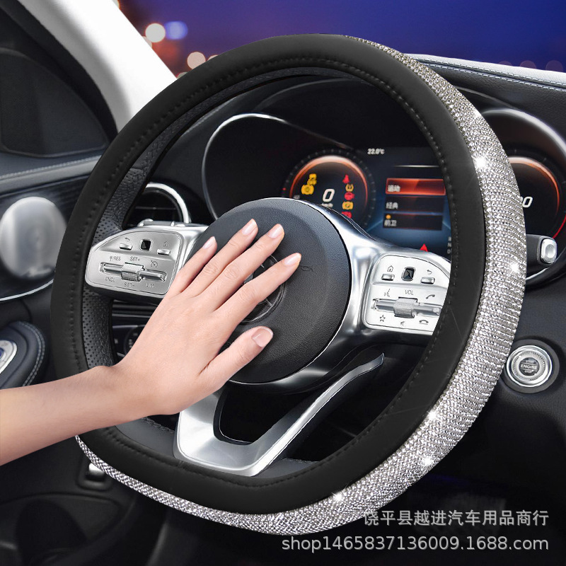 크로스보더 자동차 패션 다이아몬드 장식 D자형 스티어링 휠 커버 여신 스타일 패션 스포츠 스티어링 휠 커버스토어 가기