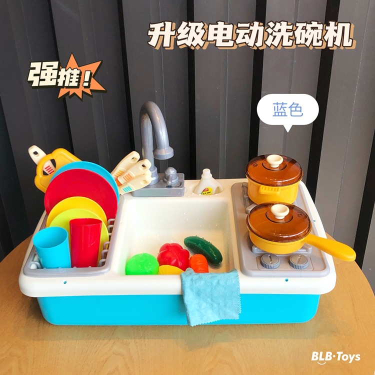 공장 도매 어린이 시뮬레이션 업그레이드 전기 식기 세척기 하우스 설거지 테이블 싱크대 순환 자동 물