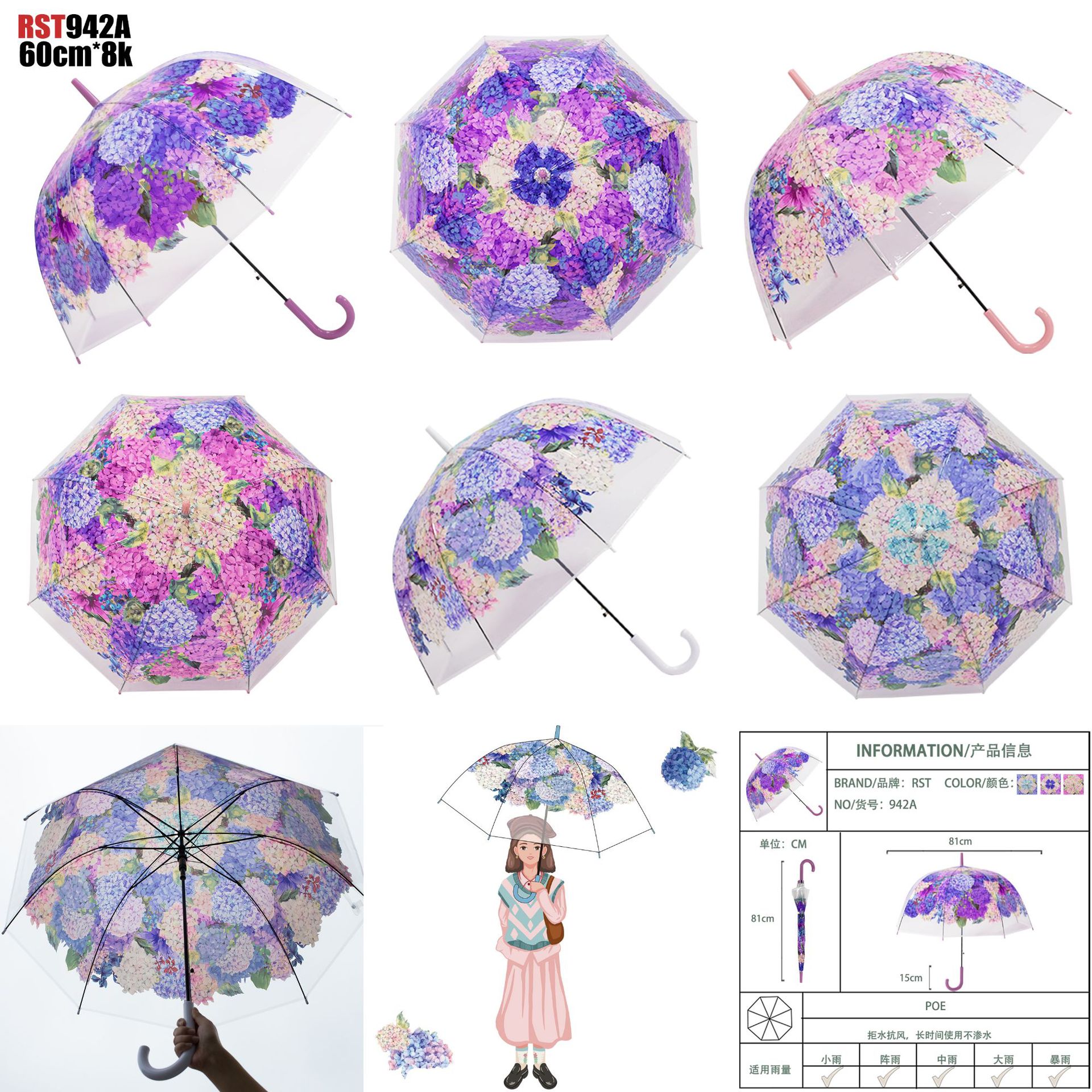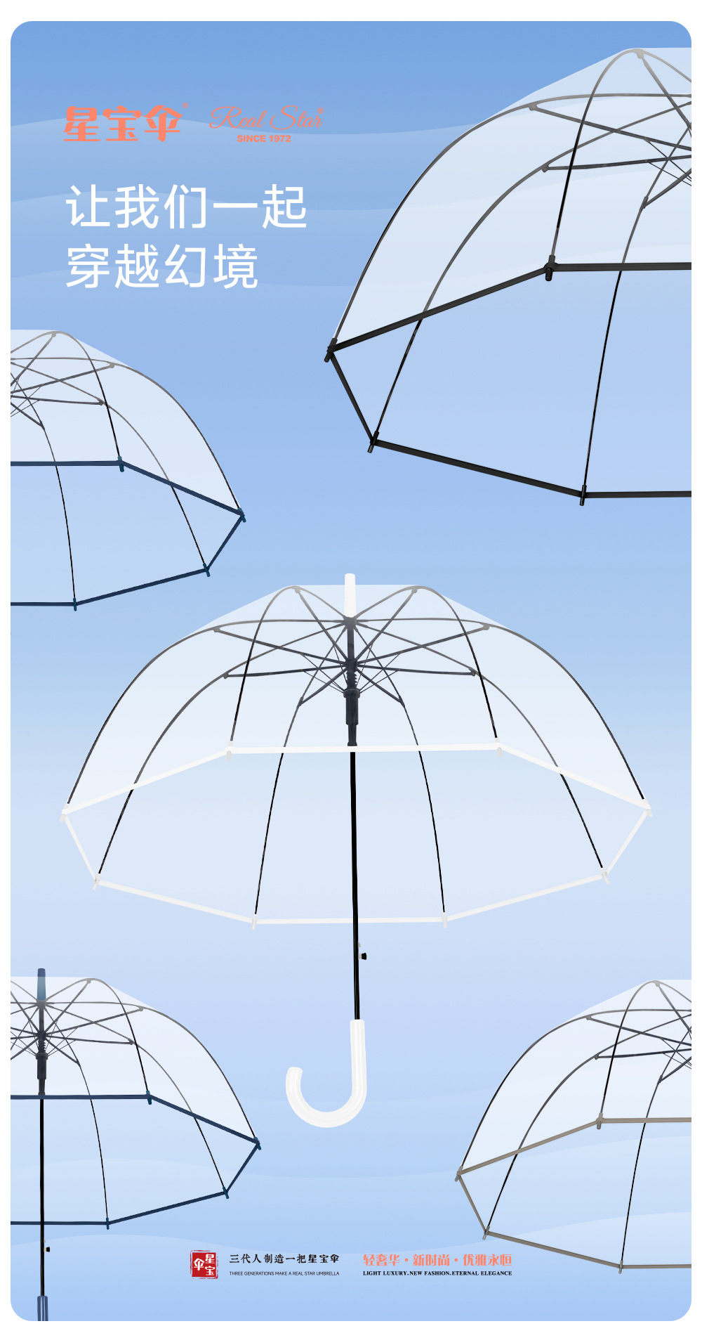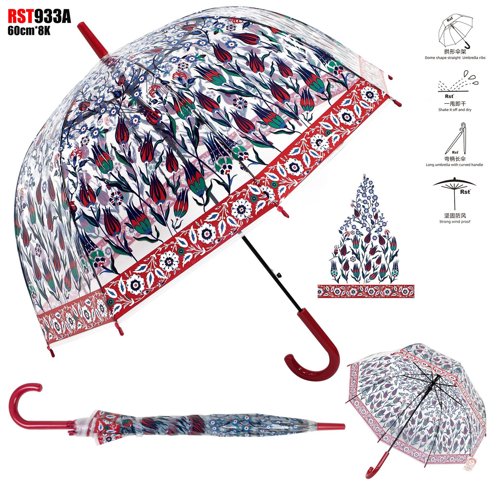 재고 패션 투명 우산 유럽 스타일 플라스틱 광고 우산 인쇄 로고 아폴로 아치 새장 우산