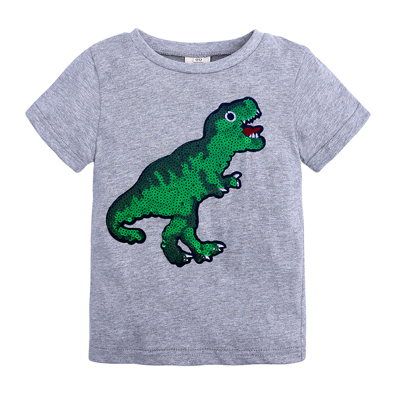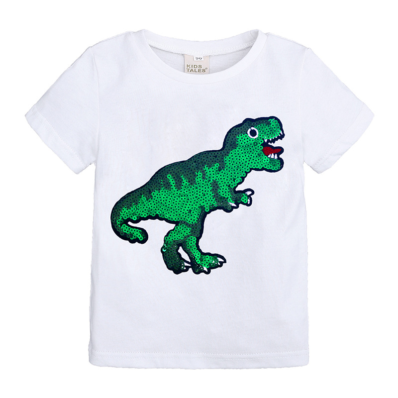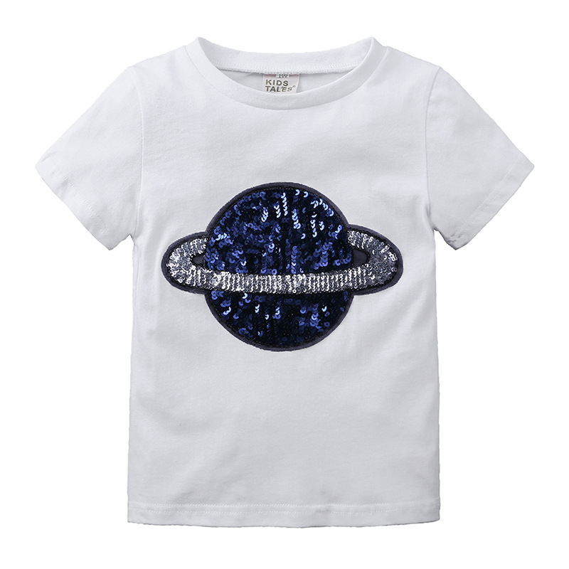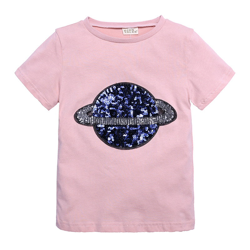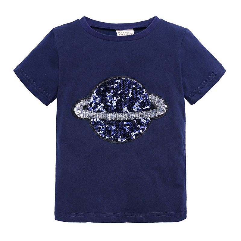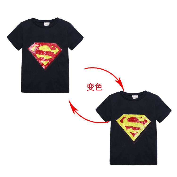 【款式】儿童夏季新款亮片翻面变色变脸卡通棉T恤男女童潮范打底衫
