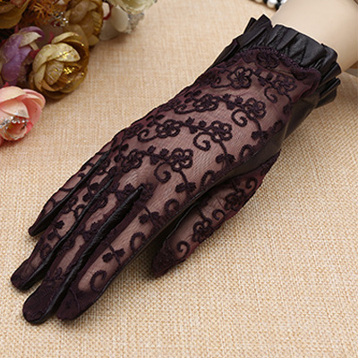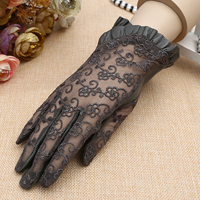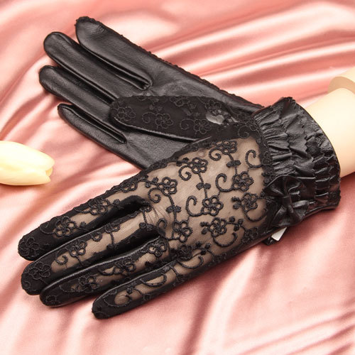 사이클링 스테이지를 운전하는 공장 도매 가죽 터치 스크린 양피 레이스 얇은 짧은 선 스크린 장갑 봄과 여름 숙녀