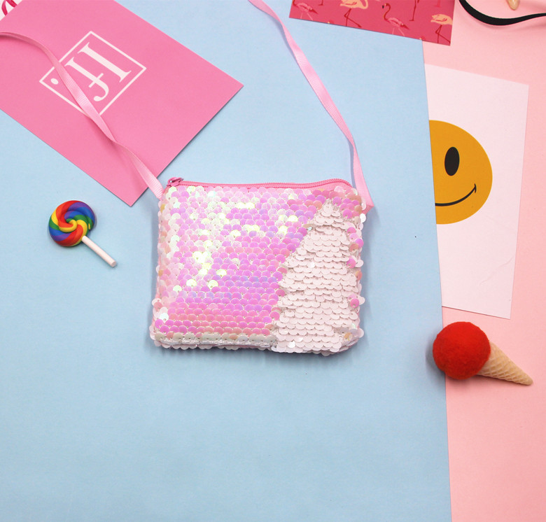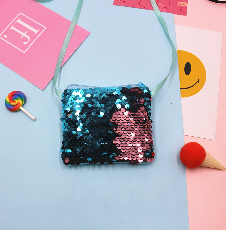 AliExpress 재고 해외 무역 인어 스팽글 가방 어린이 메신저 가방 만화 작은 지갑 동전 지갑
