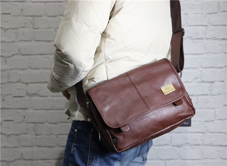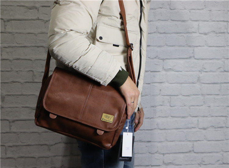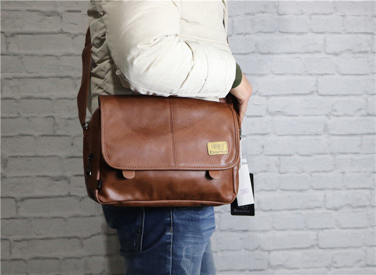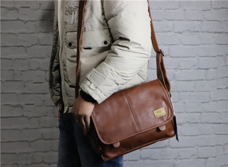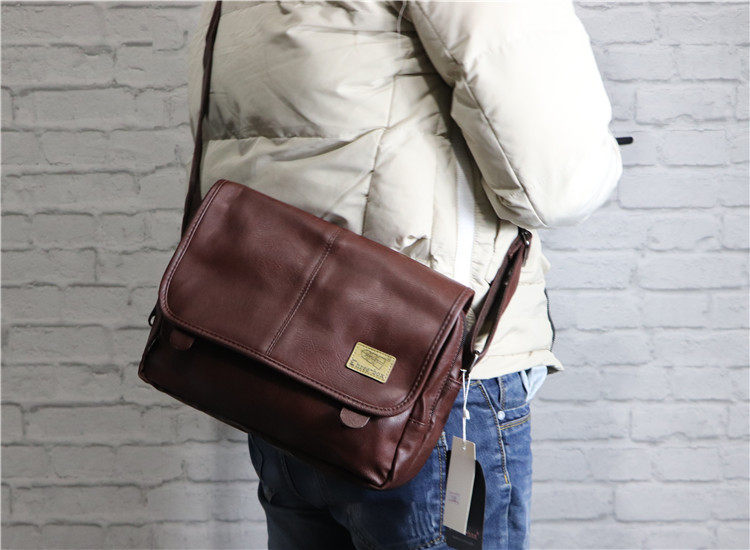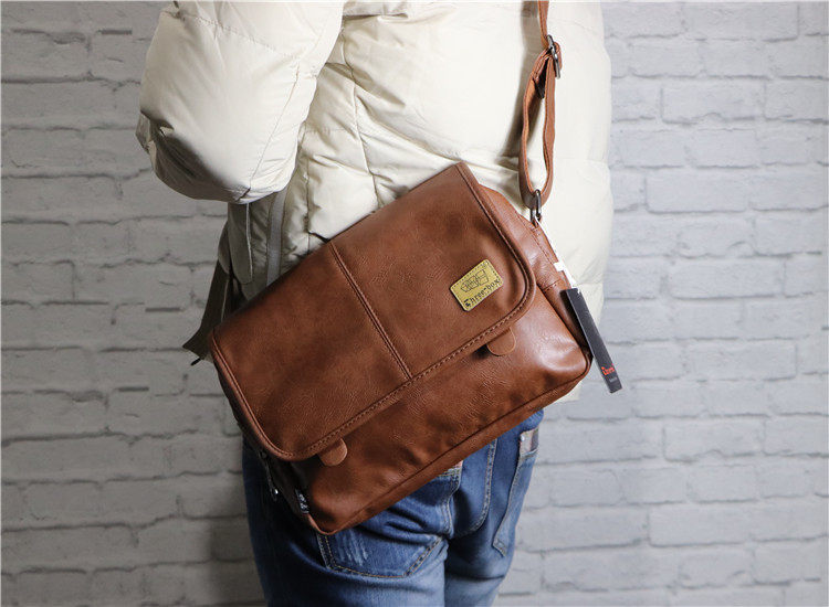 2019 신상품 홍콩 스타일 남성용 숄더백 레트로 부드러운 가죽 남성용 크로스 바디 트렌디 유행 일본식 학생 책가방스토어 가기