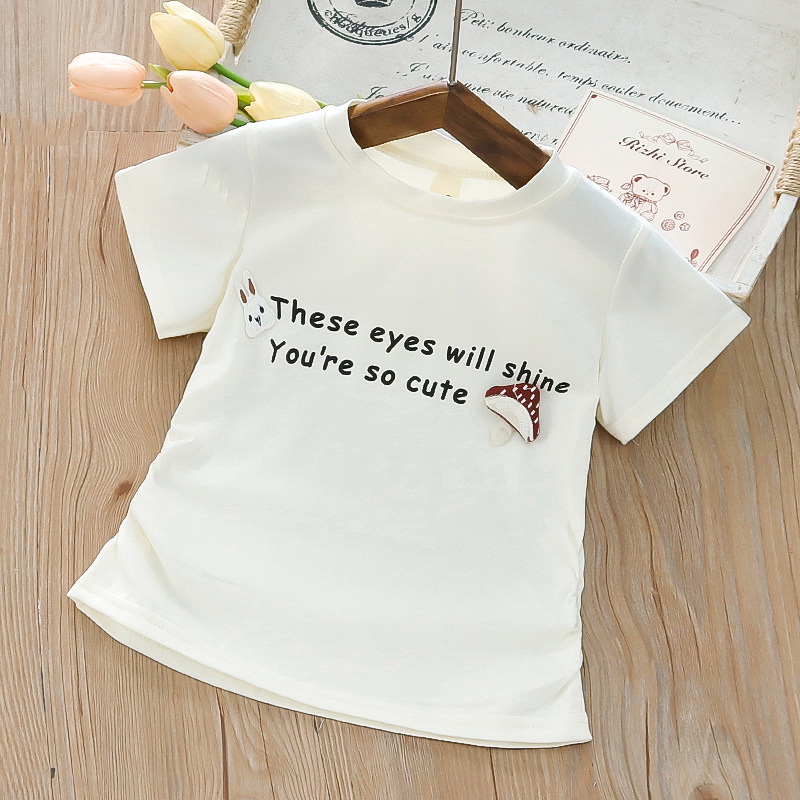 아기 반팔 여름 반팔 순수 코튼 티셔츠 소녀 여름 중소형 아동 의류 탑 어린이 도매 2025 새로운 스타일