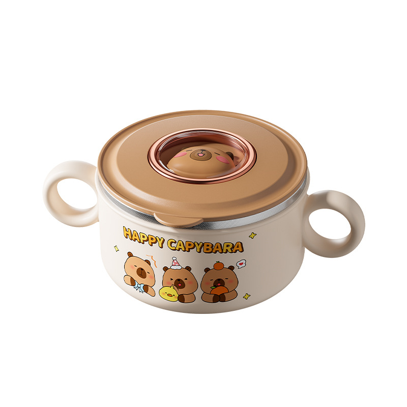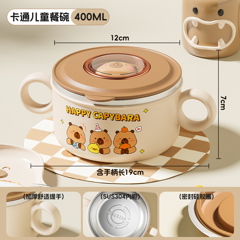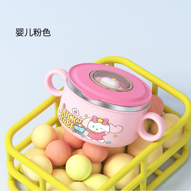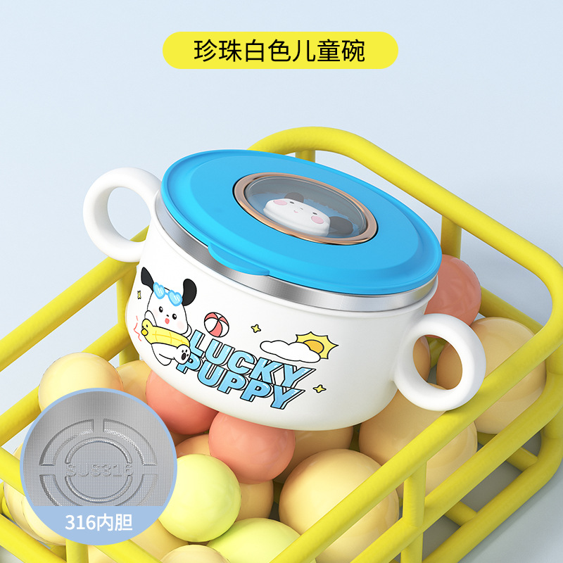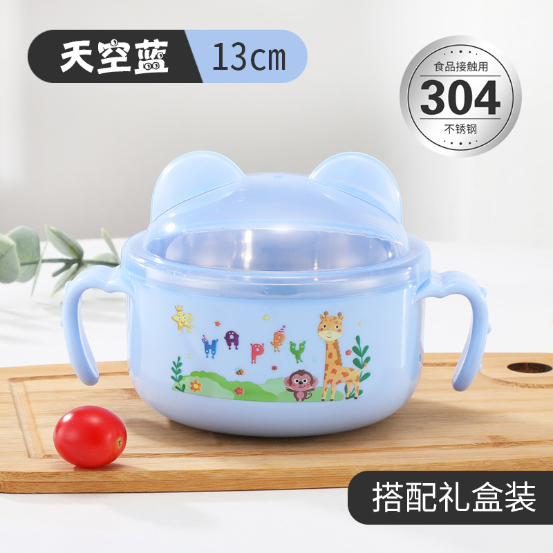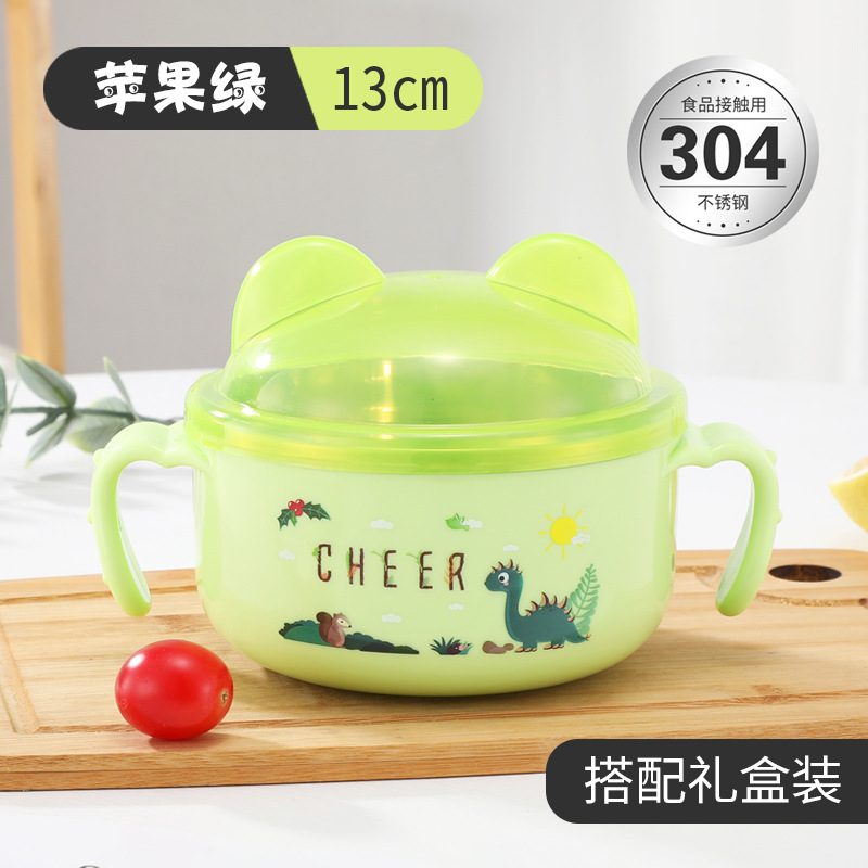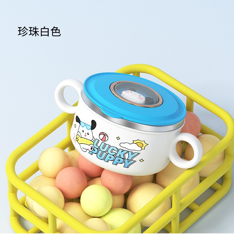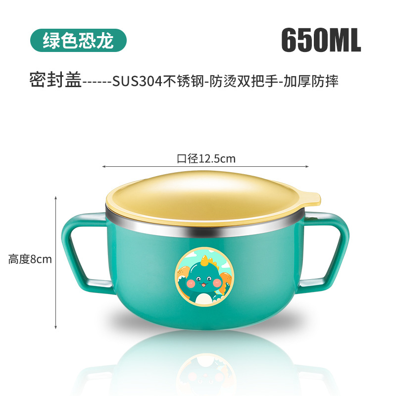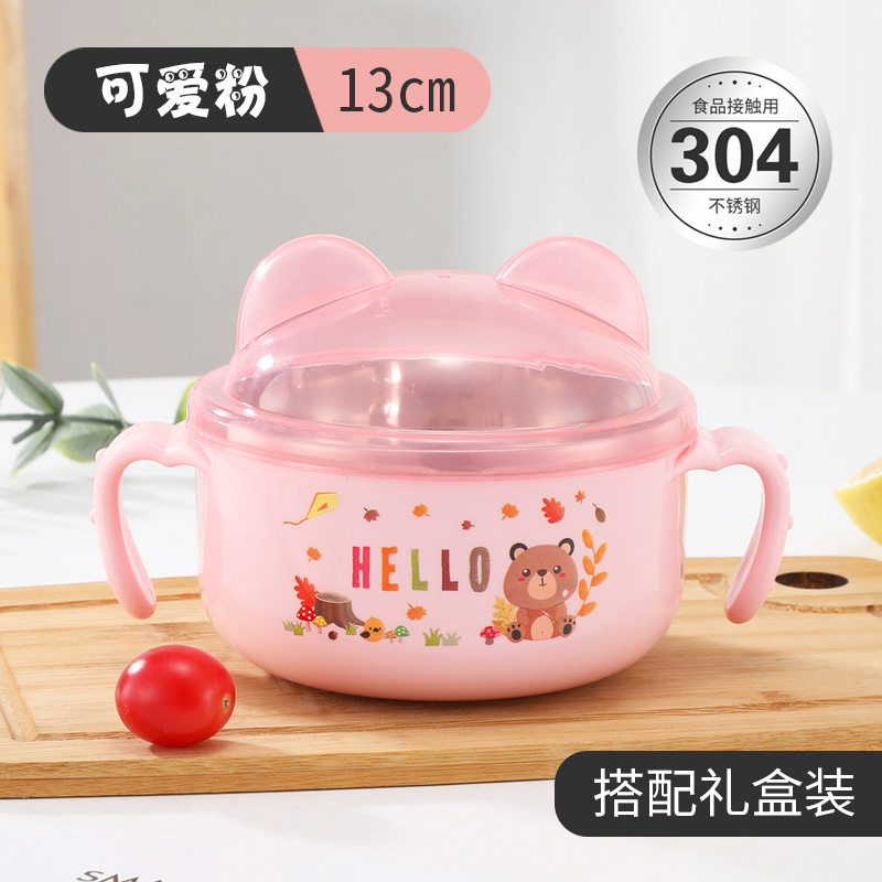 304 스테인레스 스틸 만화 어린이 그릇 이중 손잡이 뚜껑 단열 화상 방지 귀여운 이유식 그릇 어린이날 선물스토어 가기