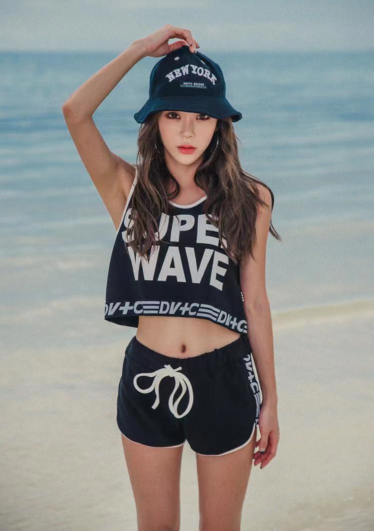 작은 향기로운 바람 수영복 여성용 블랙 레터 복서 3 피스 보수적 슬림 수영복 공장 다이렉트 넷 레드스토어 가기