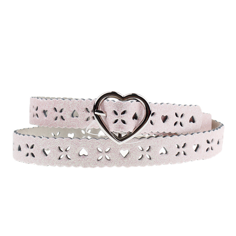 반짝이는 PU 가죽 벨트, 사랑스러운 속이 빈 소녀 벨트, 달콤한 핀 버클 사각형 얇은 벨트
