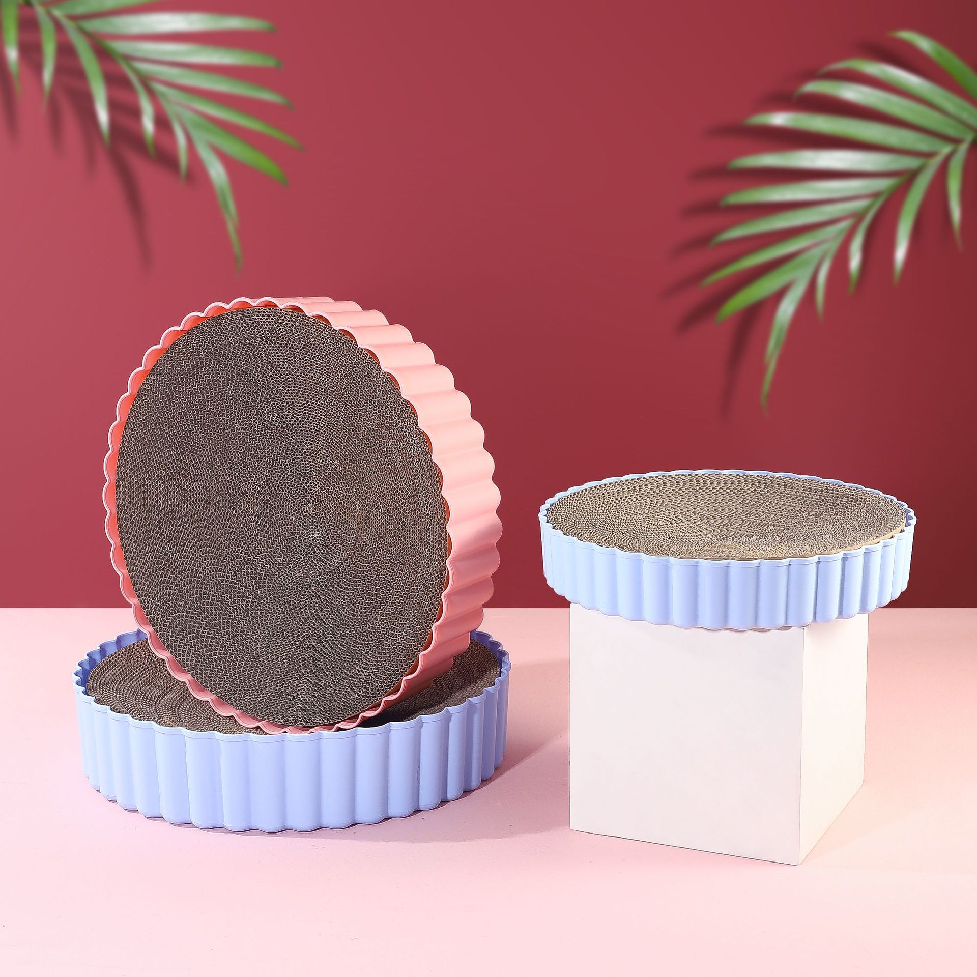 • 大号圆形瓦楞纸猫抓板耐抓防磨猫咪磨爪宠物玩具含猫薄荷猫咪用品