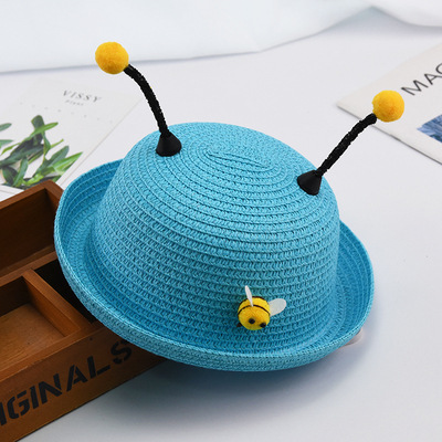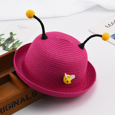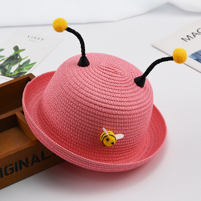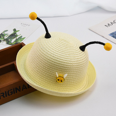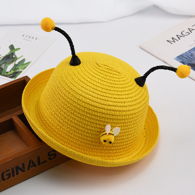 어린이 밀짚 모자 여름 남성과 여성의 아기 태양 모자 비치 모자 어린이 아기 태양 모자 부머 만화 꿀벌 모자