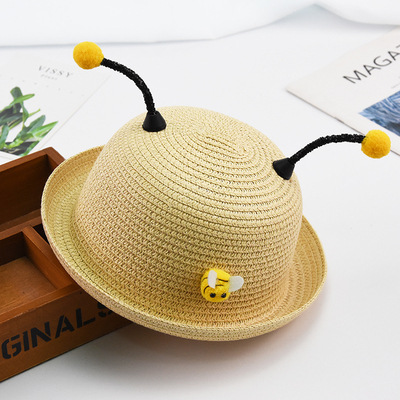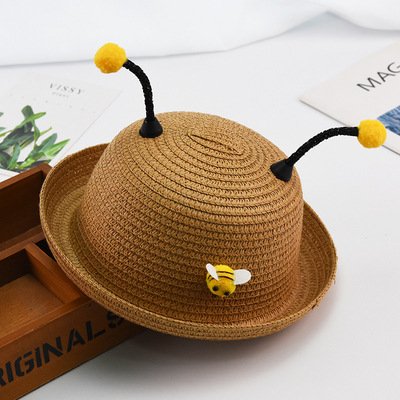 어린이 밀짚 모자 여름 남성과 여성의 아기 태양 모자 비치 모자 어린이 아기 태양 모자 부머 만화 꿀벌 모자스토어 가기