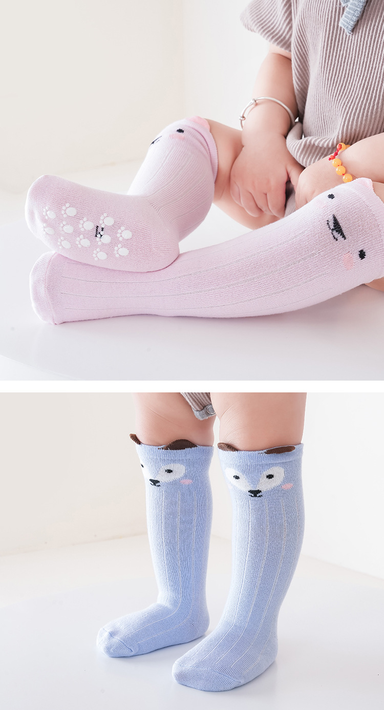 만화 아기 양말 가을과 겨울 미끄럼 방지 분배 아기 양말 순수 폴리 에스테르 면 신생아 중간 길이 무릎 위 양말 배치스토어 가기
