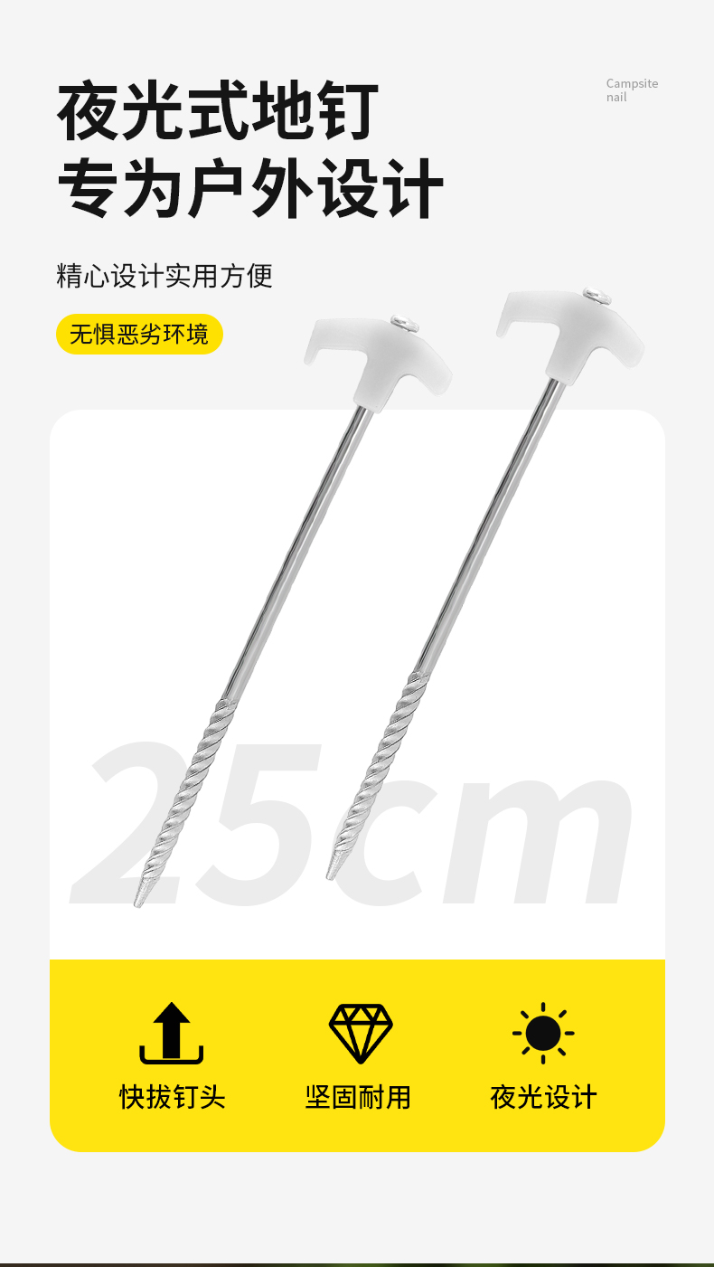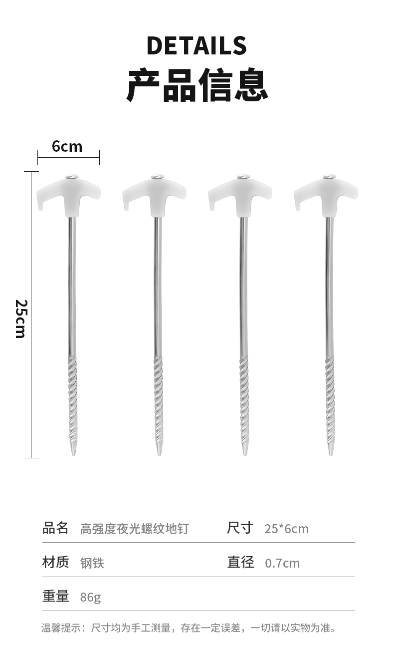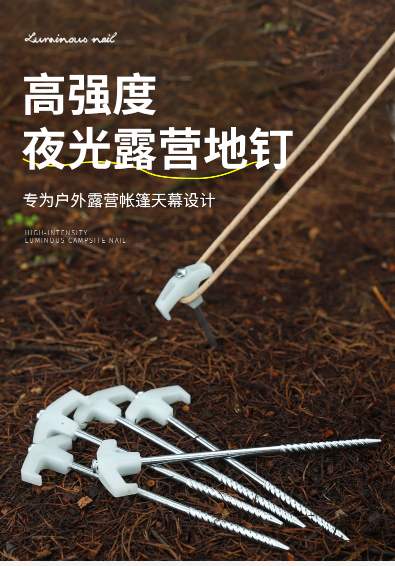 야외 스레드 발광 지상 네일 캠핑 텐트 캐노피 비치 방풍 고정 강철 손톱 연장 지구 Ding 25cm스토어 가기