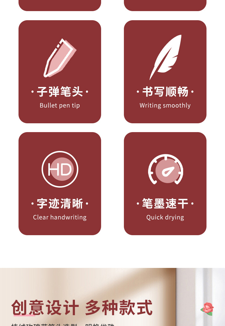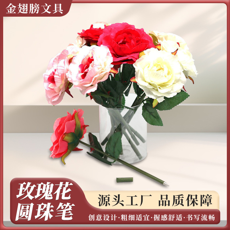 골든 윙스 공급 새로운 몰려 드는 장미 볼펜 창조적 인 시뮬레이션 꽃 펜 활동 선물 휴일 꽃 펜
