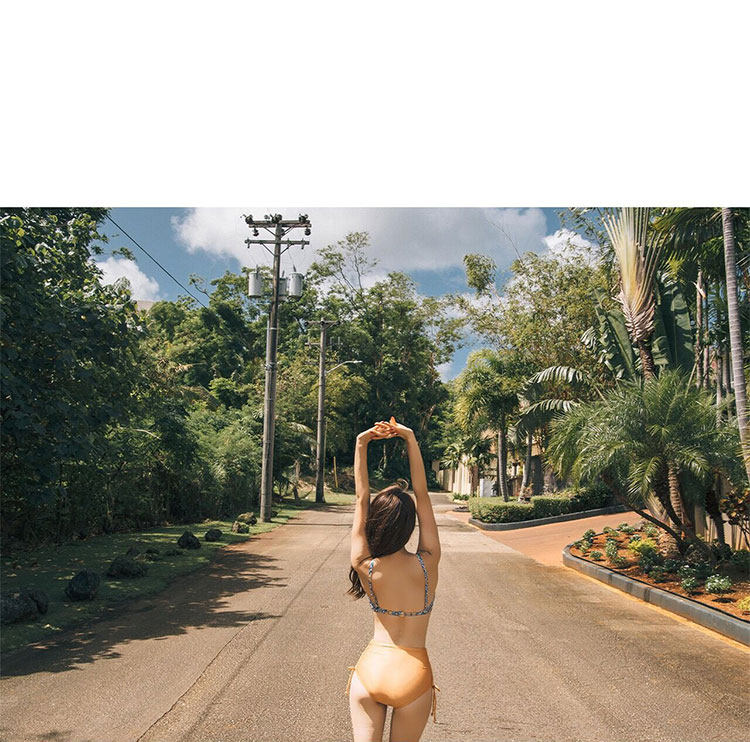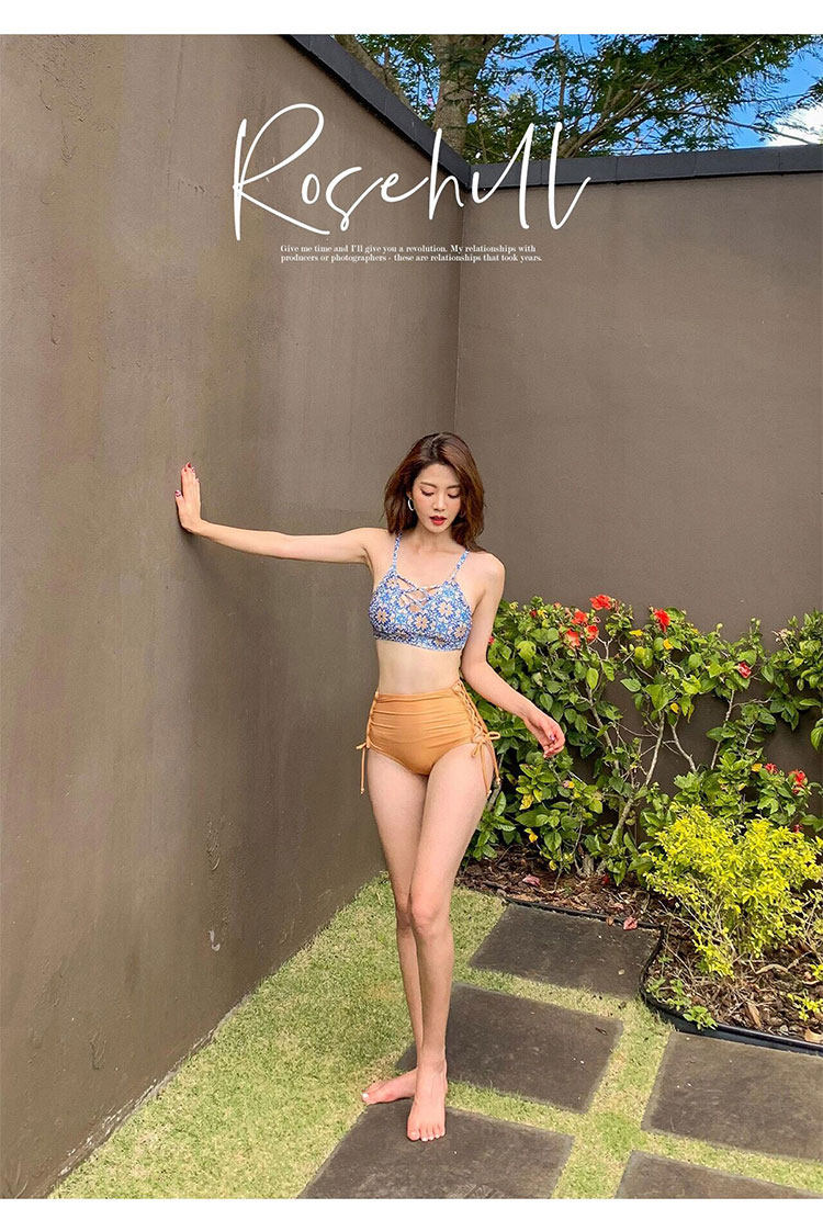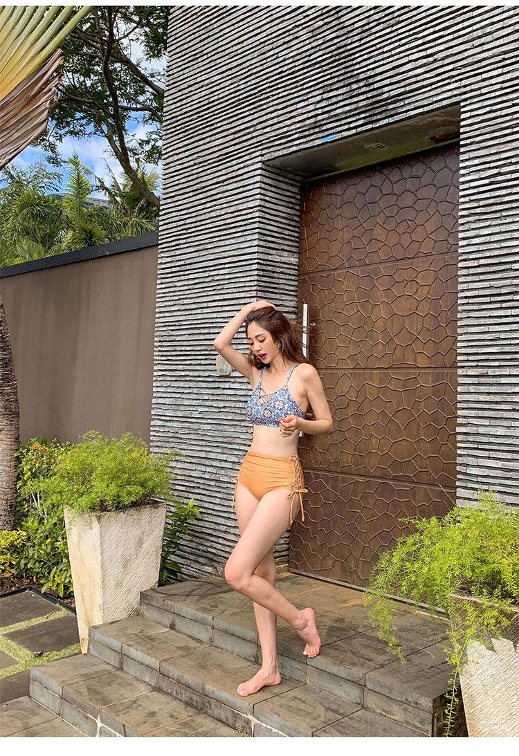 리얼 샷 한국 2019 새로운 섹시 스플릿 비키니 작은 가슴 모여 높은 허리 배꼽 얇은 온천 수영복 여성스토어 가기