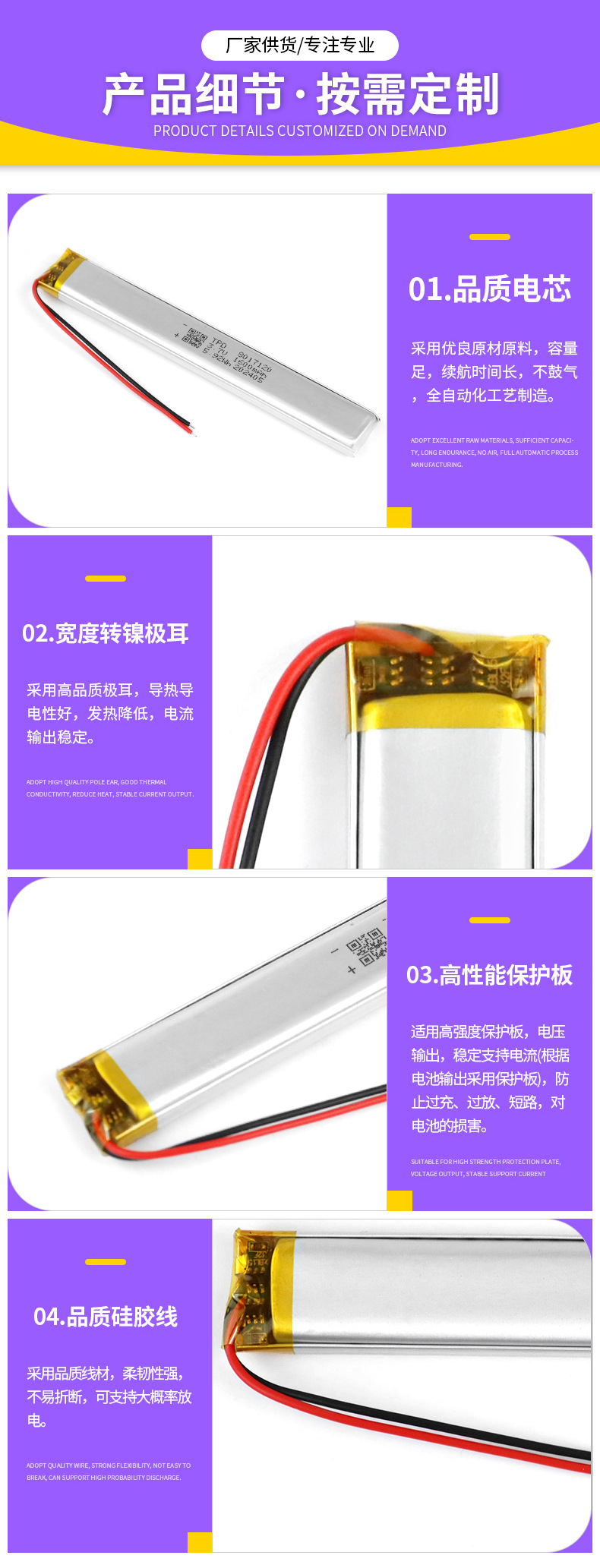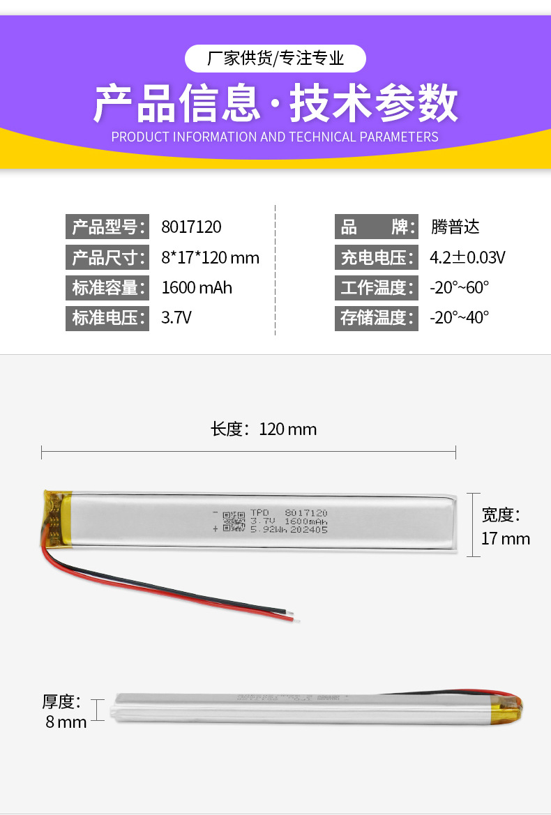 8017120 폴리머 리튬 배터리 3.7V1600mAh 유도형 긴 LED 조명 모바일 전원 소프트팩 배터리스토어 가기