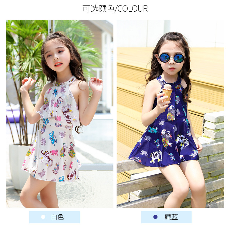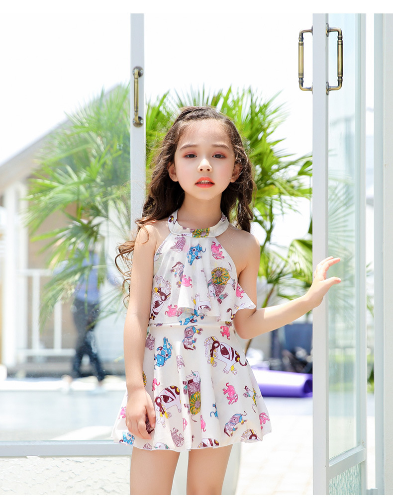 새로운 코끼리 여아 수영복 대형 중소 어린이 한국 어린이 수영복 여아 원피스 스커트 플랫 앵글 온천 수영복