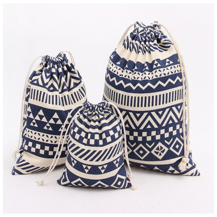 블루 에스닉 스타일 스트라이프 보관 가방 도매 수제 졸라매는 끈 가방 티 캔디 특수 포장 환경 보호스토어 가기
